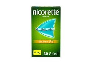 Zustand: Neu - Raucherentwöhnung - Nicorette Johnson & Johnson GmbH (OTC) - 01642887 - - MIT DEM RAUCHEN AUFHÖREN - Nikotinersatzprodukte wie das zuckerfreie Nikotinkaugummi von Nicorette können Sie in Ihrer Willenskraft auf dem Weg zum Nichtraucher unterstützen NIKOTINKAUGUMMIS LINDERN RAUCHVERLANGEN - Während der Raucherentwöhnung lindern Nikotinkaugummis Rauchverlangen und auch Entzugssymptome wie gesteigerten Appetit und innere Unruhe, aktives Kauen des Kaugummis setzt den Wirkstoff Nikotin frei FRUCHTGESCHMACK - das Nicorette Kaugummi mit freshfruit Geschmack ist zuckerfrei, erfrischt den Atem und schmeckt fruchtig MIT 4 MG NIKOTIN - für die Raucherentwöhnung von Rauchern, die mehr als 20 Zigaretten pro Tag rauchen, bei bis zu 20 Zigaretten pro Tag empfehlen wir das Nicorette Kaugummi mit 2 mg Nikotin Pflichtangaben finden Sie unten, zu Risiken und Nebenwirkungen lesen Sie die Packungsbeilage und fragen Sie Ihre Ärztin, Ihren Arzt oder in Ihrer Apotheke. - Verkäufer: esando im amazon.de Marketplace Dieses Angebot ist mit 27.30 Euro für 105 Stück Nicorette Kaugummi 4 mg whitemint eine weitere gute Option für eine gröÃ?ere Packung. ![]() ![]() Nicorette 4 mg Nikotinkaugummi whitemint für Raucher zum Aufhören, zuckerfrei, 105 Stück