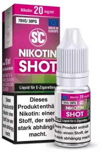690,00 /l - Kategorie: E-Zigaretten / Liquids & Zubehör - SC - GTIN:4255606712567 - Mit dem SC Nikotin Shot können Sie bei Ihrem Liquid den Nikotingehalt erhöhen. Sie haben dabei die Auswahl aus 2 Mischungsverhältnissen. Nikotin: 20mgMischverhältnis: 50PG/50VG oder 70VG/30PGInhaltstoffe: Propylenglykol, pflanzliches Glycerin, NikotinFlasche: 10 ml PET-Flasche mit Sicherheitsverschluss und Tropfaufsatz Lieferumfang 1x SC Nikotin Shot 10ml - 6,90 Euro bei Steam-Time - gefunden von billiger.de Der POPDROP 70/30 Nikotin-Shot ist eine gute Wahl für alle, die eine stärkere Dampfentwicklung und einen weicheren Throat Hit wünschen. ![]() ![]() 70/30 Nikotin-Shot 10ml 20mg by POPDROP