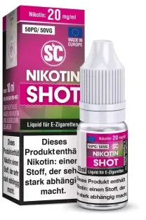 690,00 /l - Kategorie: E-Zigaretten / Liquids & Zubehör - SC - GTIN:4255606712628 - Mit dem SC Nikotin Shot können Sie bei Ihrem Liquid den Nikotingehalt erhöhen. Sie haben dabei die Auswahl aus 2 Mischungsverhältnissen. Nikotin: 20mgMischverhältnis: 50PG/50VG oder 70VG/30PGInhaltstoffe: Propylenglykol, pflanzliches Glycerin, NikotinFlasche: 10 ml PET-Flasche mit Sicherheitsverschluss und Tropfaufsatz Lieferumfang 1x SC Nikotin Shot 10ml - 6,90 Euro bei Steam-Time - gefunden von billiger.de Mit einem 50PG/50VG-Verhältnis ist dieser SC Nikotin Shot vielseitig einsetzbar und für die meisten Verdampfer geeignet. ![]() ![]() SC Nikotin Shot 10ml 10ml / 20mg / 50PG/50VG