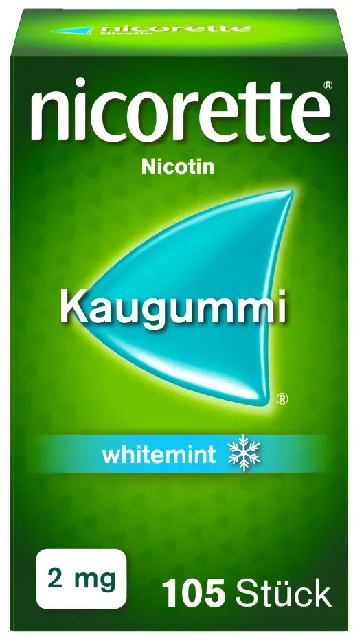 Gesundheitskategorien Abnehmen & Fitness Rauchentwöhnung Vitamine & Ergänzungen - Anwendungsgebiet von Nicorette 4mg Nikotinkaugummi whitemint zur RauchentwöhnungDas Nicorette 4mg Nikotinkaugummi whitemint zur Rauchentwöhnung unterstützt Raucher auf dem Weg zum Nichtraucher. Das aktive Kauen des Nikotinkaugummis setzt das enthaltene, therapeutische Nikotin frei, welches über die Mundschleimhaut in die Blutbahn gelangt und den Nikotinspiegel im Blut erhöht. Dies lindert das Rauchverlangen und typische Entzugserscheinungen wie innere Unruhe oder gesteigerten Appetit. Zudem kann das Kaugummikauen den Anwender vom akuten Rauchimpuls ablenken. Die zuckerfreien nicorette R Kaugummis whitemint erfrischen den Atem, haben einen intensiven Minzgeschmack und überzeugen zusätzlich durch einen Zahnweiß-Effekt. Sie enthalten 4 mg Nikotin und eignen sich daher für Personen, die bislang mehr als 20 Zigaretten pro Tag rauchen. Liegt der Zigarettenkonsum unter 20 Stück pro Tag, empfiehlt sich die Nikotinersatztherapie mit dem nicorette R Kaugummi 2 mg. Wer von geschmacklicher Abwechslung profitieren möchte, kann auch auf die nicorette R Kaugummis freshfruit und freshmint zurückgreifen. Wirkungsweise von Nicorette 4mg Nikotinkaugummi whitemint zur RauchentwöhnungDas therapeutische Nikotin wird über die Mundschleimhaut aufgenommen. Durch die Nikotinsubstitution werden Rauchverlangen und Entzugssymptome gelindert.Wirkstoffe / Inhaltsstoffe / Zutaten1 Kaugummi von Nicorette 4mg Nikotinkaugummi ... Eine mittelgroße Packung mit 105 Stück und 4mg Nikotin, die ein gutes Preis-Leistungs-Verhältnis für den regelmäßigen Gebrauch bietet. Medpex.de