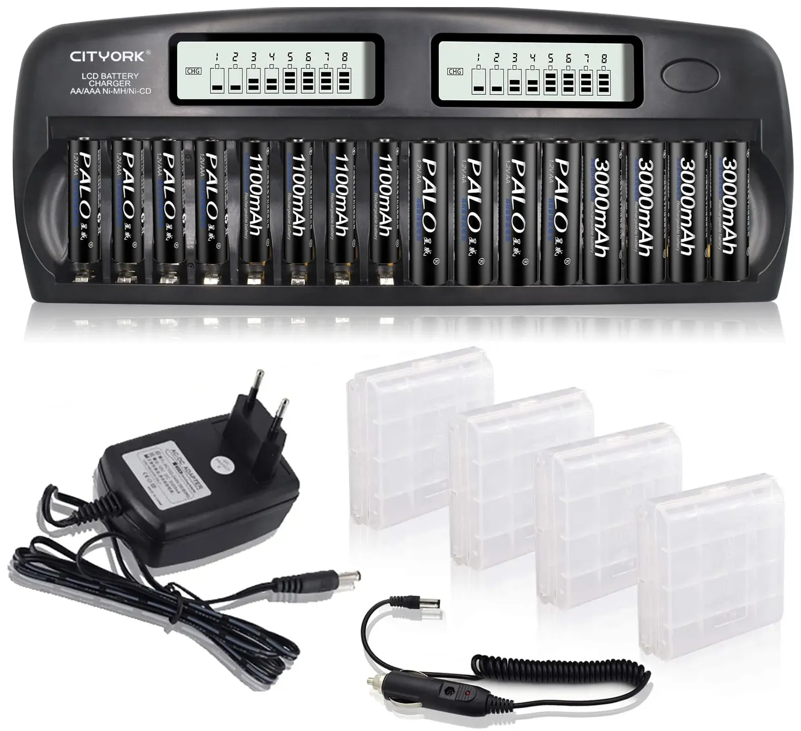 Verfügbarkeit: Auf Lager - Kategorie: Batterien & Akkus - mxbatt - Enthält Produkte: Wiederaufladbare Batterien 1.2V nimh 16 Stück aa wiederaufladbare Batterien und 16 Stück wiederaufladbare aaa Batterien Combo Hohe Kapazität 3200mAh und 1100mAh: Bis zu 3200mAh und 1100mAh Kapazität, erfüllen die Verwendung von verschiedenen Geräten; Bitte laden Sie es einmal mindestens alle 30 Tage, um Batterien aktiv zu halten Niedrige Selbstentladung: MXBatt 1.2V wiederaufladbare aa und aaa Batterien können über 1200 mal wieder aufgeladen werden und halten 80% der Kapazität nach 36 Monaten ohne Gebrauch, sie halten nicht nur die Batterien länger, sondern reduzieren auch die Wahrscheinlichkeit von Batterieschäden Breite Anwendung: MXBatt wiederaufladbare Batterien sind weit verbreitet in Haushaltsgeräten wie Digitalkameras, Spielzeug, Fernbedienungen, Handspiele, Taschenlampen, Zahnbürsten, Rasierapparate usw Aufmerksamer Service: Wenn Sie Probleme mit unserem Produkt haben, klicken Sie bitte auf Ihre Bestellung die Probleme mit der Bestellung, werden wir Ihnen in 24 Stunden antworten und bieten Ihnen eine 100% zufriedenstellende Lösung - 32,99 Euro bei Amazon Marketplace CE - gefunden von billiger.de Dieses Set enthält ein Ladegerät und eine große Anzahl von AA- und AAA-Akkus, was es zu einer praktischen Komplettlösung macht. ![]() ![]() CITYORK 16 Slots AA/AAA NiMH Smart Battery Charger Eingebauter IC Schutz - mit Entladefunktion & LCD Display - mit 8 von 3000mAh AA & 8 von 1100mAh AAA High Capacity Batterien