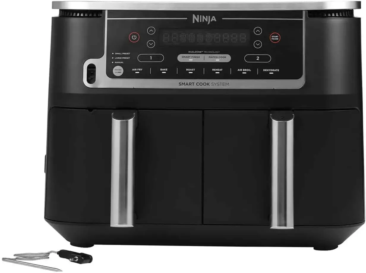 Zustand: Neu - Heißluftfritteusen - Ninja - AF400EU - EAN: 0622356245272 - Heißluftfritteuse mit 2470 W Leistung Max. Kapazität ca. 9.5 l Zusätzlich enthalten: Grillrost - bei Amazon.de Dieses Angebot ist attraktiv, da es die Ninja Foodi MAX Dual Zone AF451EU inklusive digitalem Bratenthermometer zu einem sehr guten Preis anbietet. ![]() ![]() Ninja Foodi MAX Dual Zone AF451EU 9,5 l schwarz mit digitalem Bratenthermometer