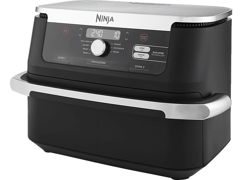 Kategorie: Fritteusen - Ninja - GTIN:0622356270373 - Die neue Ninja Foodi FlexDrawer, die Heißluftfritteuse mit extra großem Fassungsvermögen, passt sich jeder Mahlzeit an. Garen Sie größere Speisen in der 10.4-Liter-MegaZone oder teilen Sie sie in zwei unabhängige Garzonen auf, um die Kochfunktionen mit der Dual-Zone-Technologie von Ninja zu kombinieren. Bringen Sie Ihre Rezepte aufs nächste Niveau Es gibt viele Gründe, in einer Heißluftfritteuse zu kochen, vom gesünderen Frittieren bis zum geringeren Energieverbrauch als bei einem Backofen*. Aber wenn Sie für viele Personen kochen, kann es manchmal schwierig sein, alles in einem Gerät unterzubringen. Mit der extragroßen 10.4-Liter-MegaZone haben Sie jetzt viel Platz für größere Speisen, die Sie normalerweise im Backofen zubereiten würden. Von einem Brathähnchen mit knusprigen Kartoffeln bis hin zu einer vorbereiteten Lasagne in Familiengröße. Das Gerät ist groß genug für eine Brat- oder Auflaufform und ermöglicht die Zubereitung von Lachs und Süßkartoffeln, geröstetem Gemüse, eine große Portion Brownies und vielem mehr. Sie möchten 2 Gerichte gleichzeitig zubereiten? Dank der Dual Zone-Technologie können Sie mit dem Trenner die MegaZone in 2 unabhängige Garzonen unterteilen. Garen Sie 2 Speisen auf 2 unterschiedliche Arten - und beide sind gleichzeitig fertig! Kombinieren Sie Zubereitungsfunktionen, Zeiten und Temperaturen in jeder Zone und die SYNC-Funktion sorgt dafür, dass beide gleichzeitig fertig werden. Perfekt, um ... Mediamarkt.de bietet die Ninja AF500EU Foodi Flex Drawer Heißluftfritteuse für 148.9 Euro an, was ein guter Preis für ein Neugerät ist. ![]() NINJA AF500EU Foodi Flex Drawer Heißluftfritteuse