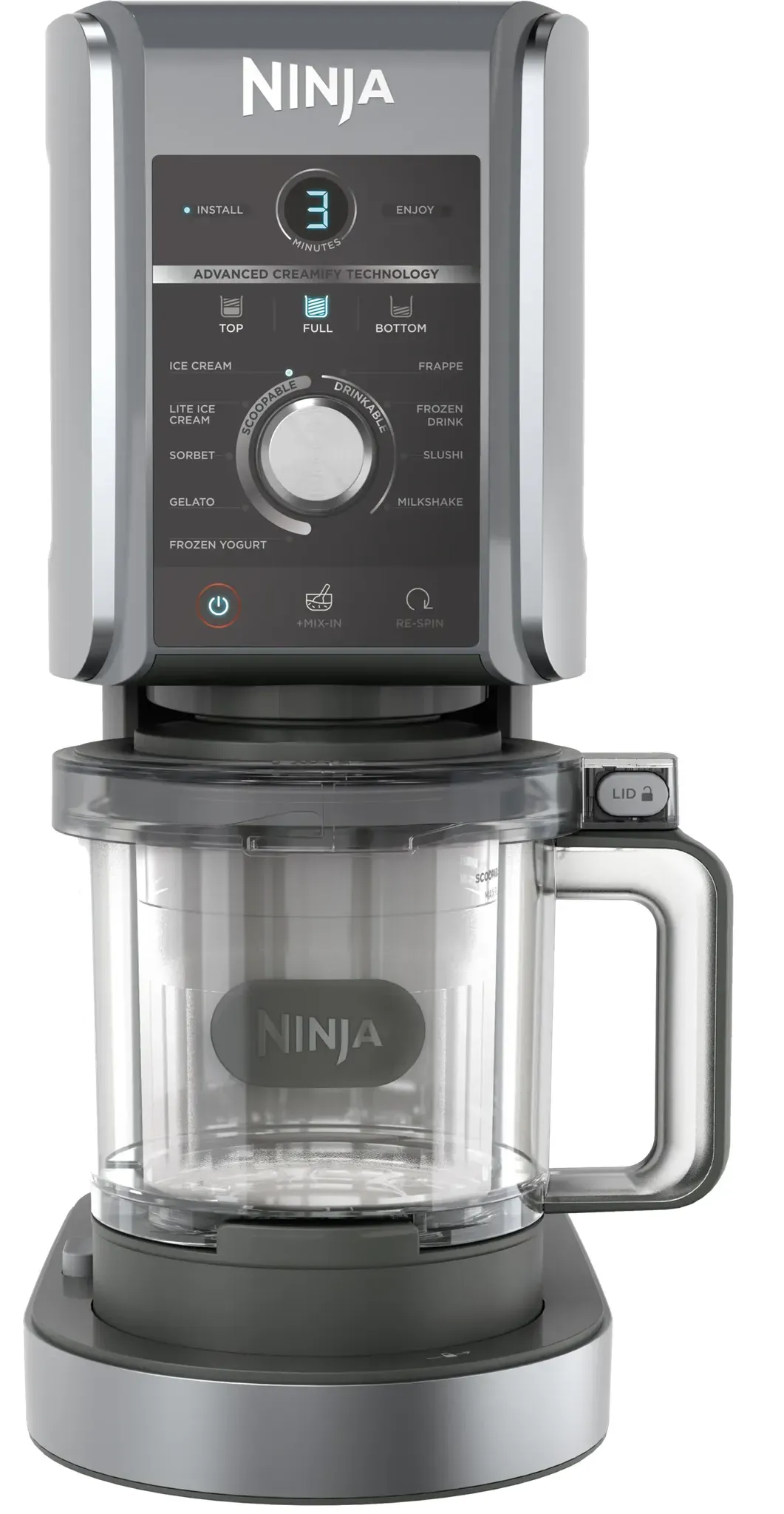 Ninja - EAN: 0622356283076 - Die Ninja CREAMi Deluxe Eismaschine NC501EU kann fast alles in Eiscreme verwandeln und noch viel mehr. Neben den CREAMi-Klassikern wie Eiscreme, Sorbet, Gelato und Mix-in-Meisterwerke kann sie auch Slushies, Frappes, Frozen Yoghurt und Frozen Drinks direkt zu Hause zubereiten. Die fortschrittliche CREAMify-Technologie mit Dual-Drive-Motoren übt Druck nach unten aus und dreht den professionellen Creamerizer-Paddle, der die Eispartikel fein hobelt und in köstliche Leckereien verwandelt. Die Eis- und Getränkemaschine kann außerdem zuckerarme, laktosefreie und vegane Versionen aller Lieblingsspeisen herstellen. Mit den zusätzlichen Funktionen Slushi, Frozen Drink, Frappe und Frozen Yoghurt kann die CREAMi ganz neue Leckereien zum Löffeln und Trinken zubereiten. Die neuen, größeren CREAMi Deluxe Behälter fassen 50% mehr Eiscreme als die Original Ninja CREAMi. Und mit drei 709ml-Behältern und ein wenig Vorbereitungsarbeit kann man über 2 Liter Eiscreme herstellen und drei verschiedene Geschmacksrichtungen kreieren, um alle Geschmäcker der Familie zu treffen. Eine gefrorene Basis lässt sich in zwei fertige Geschmacksrichtungen verwandeln - eine in der oberen Hälfte des Deluxe Behälters und die andere in der unteren. Man kann sogar die obere Hälfte verarbeiten, um sie jetzt zu genießen, und den Rest mit der Re-Spin-Funktion für später aufheben.Die Re-Spin-Funktion macht das gefrorene Dessert nach der ersten Verarbeitungsrunde noch weicher und cremiger. ... Coolblue bietet die Ninja Creami Deluxe für 251.95 Euro an, was ein solider Preis für ein Neugerät ist. ![]() ![]() Ninja Creami Deluxe