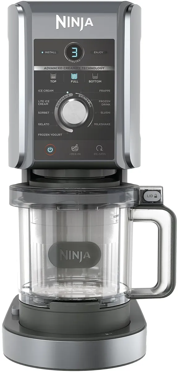 32 Händlerangebote bei billiger.de - Kategorie: Eismaschinen - Ninja - 10 FUNKTIONEN: Verwandeln Sie Zutaten in köstliche Getränke und Desserts mit 10 Funktionen: Eiscreme, Sorbet, leichte Eiscreme, Gelato, Milchshake, Mix-In, Frappe, Frozen Drink, Slushi & Frozen Yoghurt. FASSUNGSVERMöGEN IN FAMILIENGRößE: CREAMi Deluxe enthält 2x 706 ml Deluxe Becher, damit Sie noch mehr köstliche gefrorene Leckereien mit Freunden und Familie genießen können. KREIEREN SIE 2 GESCHMACKSSORTEN IN EINEM: Verwenden Sie die Verarbeitungseinstellungen 'Oben' und 'Unten', um zwei verschiedene Eiscreme-Geschmackskombinationen in einem Deluxe-Becher zu kreieren, z. B. Kirsche und Vanille. DESSERTS UND GETRäNKE NACH MASS HERSTELLEN: Kreieren Sie Eis und Getränke nach Ihren Wünschen. Kreieren Sie Ihre Lieblingsdesserts aus Cafés oder Restaurants, experimentieren Sie mit Geschmacksrichtungen oder kreieren Sie zuckerarme oder vegane Leckereien. Abmessungen: L: 30,5 cm x H: 42,39 cm x B: 21,38 cm. Gewicht: 6,54 kg. - GTIN:0622356350907 electronis.de hat die Ninja NC502EU Creami Deluxe 10-in-1 Eismaschine für nur 203.53 Euro im Angebot, was sie zu einer der preiswertesten Optionen macht. ![]() ![]() Ninja NC502EU Creami Deluxe 10-in-1 Eismaschine