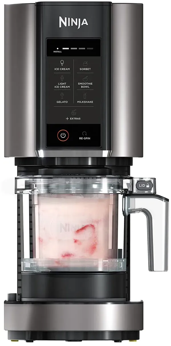 Ninja - EAN: 0622356243391 - . 473 ml Kapazität - perfekt für Einzelportionen . 7 voreingestellte Programme für Eis, Gelato, Sorbet, Smoothies und Milchshakes . BPA-freie Behälter zum Zubereiten und Aufbewahren . Vorgefertigtes 'Extras'-Programm zum Mischen von Toppings in Desserts . Einfache Bedienung über Touchscreen mit Fortschrittsanzeige . Spülmaschinenfeste Teile für einfache Reinigung . Möglichkeit, mehrere Geschmacksrichtungen gleichzeitig zuzubereiten Der NC300 ermöglicht es Ihnen, Ihre eigenen hausgemachten Köstlichkeiten herzustellen - von cremigem Eis und Gelato bis hin zu reichhaltigen Milchshakes und erfrischenden Sorbets. Mit einem Fassungsvermögen von 473 ml ist er perfekt für einzelne Portionen oder zum Teilen mit Ihren Lieben. Dies ist nicht nur eine Eismaschine: Sie können auch cremige Smoothie-Bowls zum Frühstück zubereiten, köstliche Fruchtsorbets als Snacks servieren, Ihre Kinder mit hausgemachten Milchshakes verwöhnen und nach dem Abendessen ein leckeres Dessert genießen. Die Bedienung ist einfach: Füllen Sie die Zutaten in einen der mitgelieferten BPA-freien Behälter, frieren Sie ihn 24 Stunden lang ein und lassen Sie die Maschine die gefrorene Mischung mit dem rotierenden Messer in eine seidige, glatte Nachspeise verwandeln. Genießen Sie sofort oder frieren Sie für später ein. Drei Behälter sind enthalten, so dass Sie bis zu 1,4 Liter Eis herstellen und mehrere Geschmacksrichtungen gleichzeitig kreieren können, damit alle in Ihrem Haushalt ... Dieses Angebot für die Ninja CREAMi NC300EU ist eine solide Wahl für alle, die ein zuverlässiges Modell mit mehreren Programmen und Behältern suchen. ![]() ![]() Ninja CREAMi Eismaschine & Dessertmaschine mit 3 Behältern, 7 Programmen, Herstellung von Eis, Gelato, Sorbet, Smoothie-Bowls, Milchshakes und mehr, Schwarz/Silber, 1,4L Eiscreme Kapazität, NC300EU