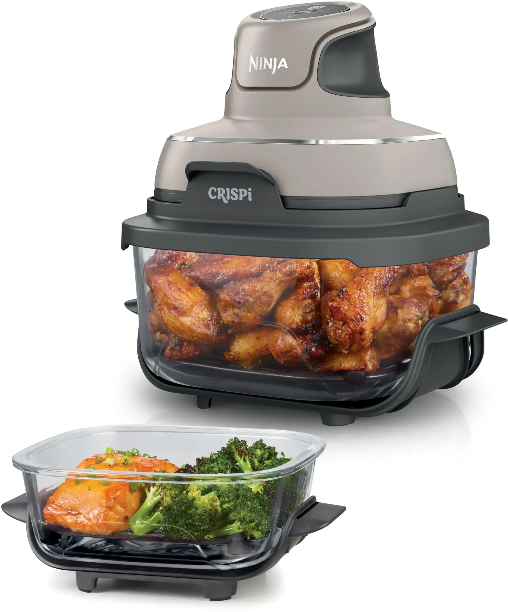 NINJA - EAN: 0622356307741 - Vielseitige Heißluftfritteuse aus Glas Vereint Qualität mit Flexibilität: Die tragbare NINJA CRISPi revolutioniert deine Kochabenteuer. Mit der trendigen 4in1-Glas-Heißluftfritteuse kannst du in einer kleinen Küche, in einer großen Küche oder auch auf der Terrasse leckere Menüs zubereiten. Durch die auslaufsicheren Snap-Lock-Deckel und das ergonomische Design ist dabei nicht nur das Kochen ein Vergnügen, sondern auch das Servieren direkt aus dem Glasbehälter. Einfach komfortabel Ideal für Meal-Prep, Familienmenüs oder Partysnacks: Mt der Heißluftfritteuse lassen sich mühelos sowohl Mahlzeiten für 4 Personen als auch Einzelportionen zubereiten und direkt auftischen - oder für den nächsten Tag vorbereiten. Neben der Frittier-Funktion lassen sich Speisen auch braten, warmhalten oder aufknuspern. Letzteres sorgt dafür, dass du dein Frühstücksbrötchen extra knusprig genießen kannst. Was erhalte ich? Glas-Heißluftfritteuse CRISPi FN101EU 2 spülmaschinenfeste TempWare Glasbehälter, 1,4 L und 3,8 L 2 antihaftbeschichtete Crisper-Gittereinsätze 2 Aufbewahrungsdeckel Auf einen Blick bietet 4 Kochfunktionen: Heißluftfrittieren, Braten, Warmhalten und Aufknuspern für die Zubereitung von Portionen für bis zu 4 Personen leicht und tragbar - perfekt für kleine Küchen, Familienessen oder das Kochen unterwegs TempWare-Glasbehälter sind temperaturwechselbeständig, ohne PFAS ergonomische Griffe ermöglichen direktes Servieren auslaufsichere Snap-Lock Deckel für ... Die graue Ninja CRISPi Heißluftfritteuse ist hier zu einem guten Preis gelistet und bietet eine neutrale Farboption für jede Küche. ![]() ![]() Ninja CRISPi tragbare Air fryer Heißluftfritteuse, 3,8 l, 4-in-1: Heißluftfrittieren, Braten, Warmhalten, Recrisp, kompakt, 6 Portionen, 2x herausnehmbare Glasbehälter & Deckel, 1700W, Grau FN101EUGY