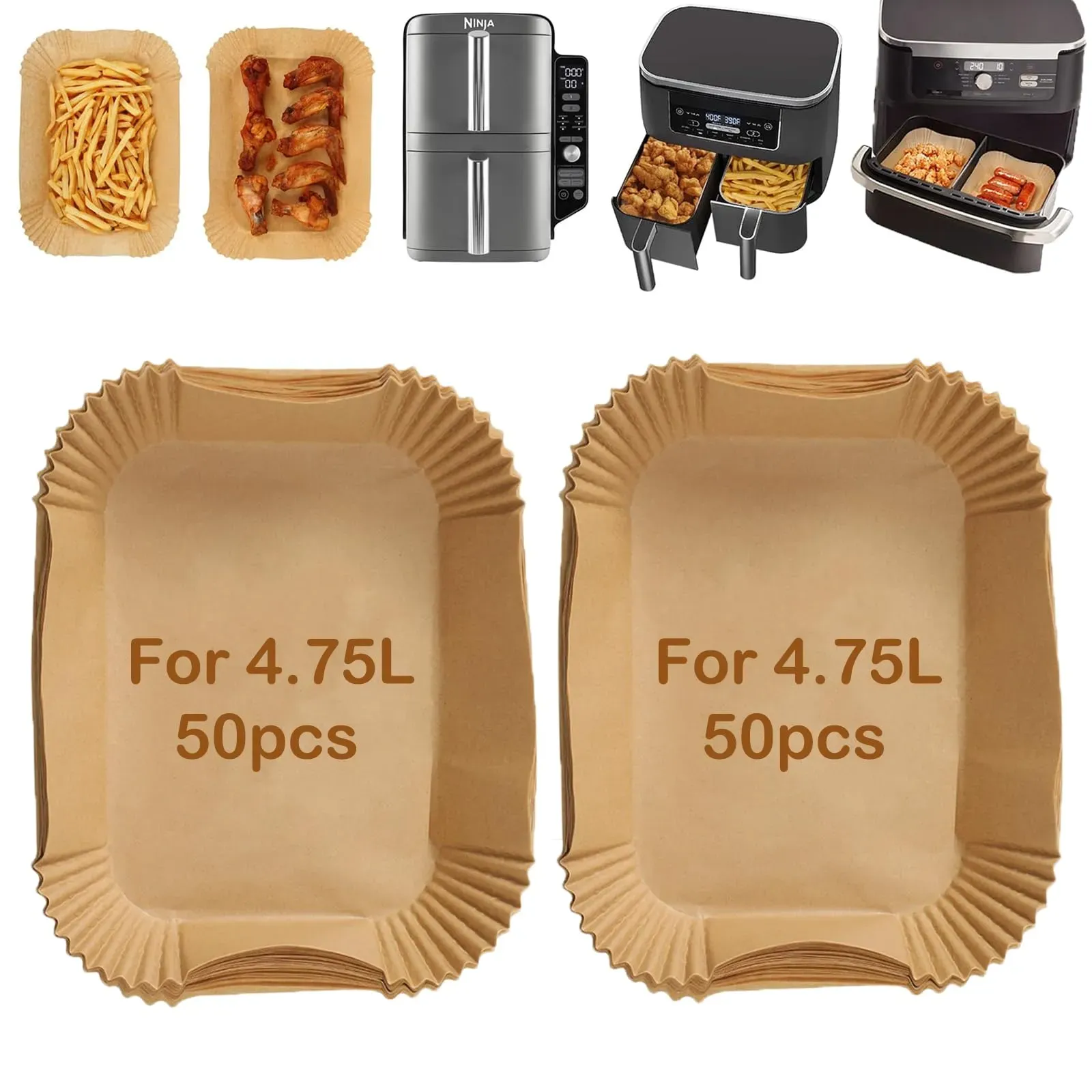 Verfügbarkeit: Auf Lager - Kategorie: Fritteusen - baketron - ÂBackpapier Airfryer für NINJA DUALDie Größe der heißluftfritteuse backpapier für Ninja beträgt 14 cm * 22 cm * 4,5 cm. Besonders geeignet für Ninja Foodi Dual Zone AF300EU/AF400EU Heißluftfritteuse/Ninja Double Stack XL 9.5L SL400EU. Ein Must-Have Air Fryer Zubehör für Ninja Dua. Â100% Gesund und LebensmittelechtUnsere Airfryer-Backpapiere bestehen aus natürlichem Zellstoff und sind mit einer lebensmittelechten Beschichtung versehen. Sie sind frei von Fluoreszenzmitteln, wasser- und fettbeständig, nicht klebrig, ungebleicht, ungiftig und BPA-frei. Mit unseren Backpapieren können Sie sich bedenkenlos dem gesunden Kochen widmen, ohne sich Gedanken über schädliche Chemikalien machen zu müssen. ÂHitzebeständig & Einfach zu BedienenHitzebeständig bis 232 °C (450 °F), mikrowellen- und ofenfest. Diese antihaftbeschichteten Einweg-Luftfritteusenblätter haben alle eine Schalenform und eine exakte Größe, sie müssen nicht geschnitten oder gefaltet werden. Legen Sie die Einsätze für die Ninja Dual Air Fryer einfach in den Korb und werfen Sie sie nach Gebrauch in einen Mülleimer. Im Vergleich zu Silikon-Luftfritteuseneinlagen sind Luftfritteusen-Papiereinlagen bequemer. ÂHalten Sie Ihre Heißluftfritteuse SauberHeißluftfritteuse backpapier öl- und wasserbeständig, 4,5 cm hoher Rand, es kann Ihre Luftfritteuse effektiv vor Fett und Lebensmittelrückständen schützen, werfen Sie einfach das ... ![]() ![]() 100x Backpapier - für Ninja eBay SL400EUDouble Stack XL 9.5L Heißluftfritteuse Zubehör
