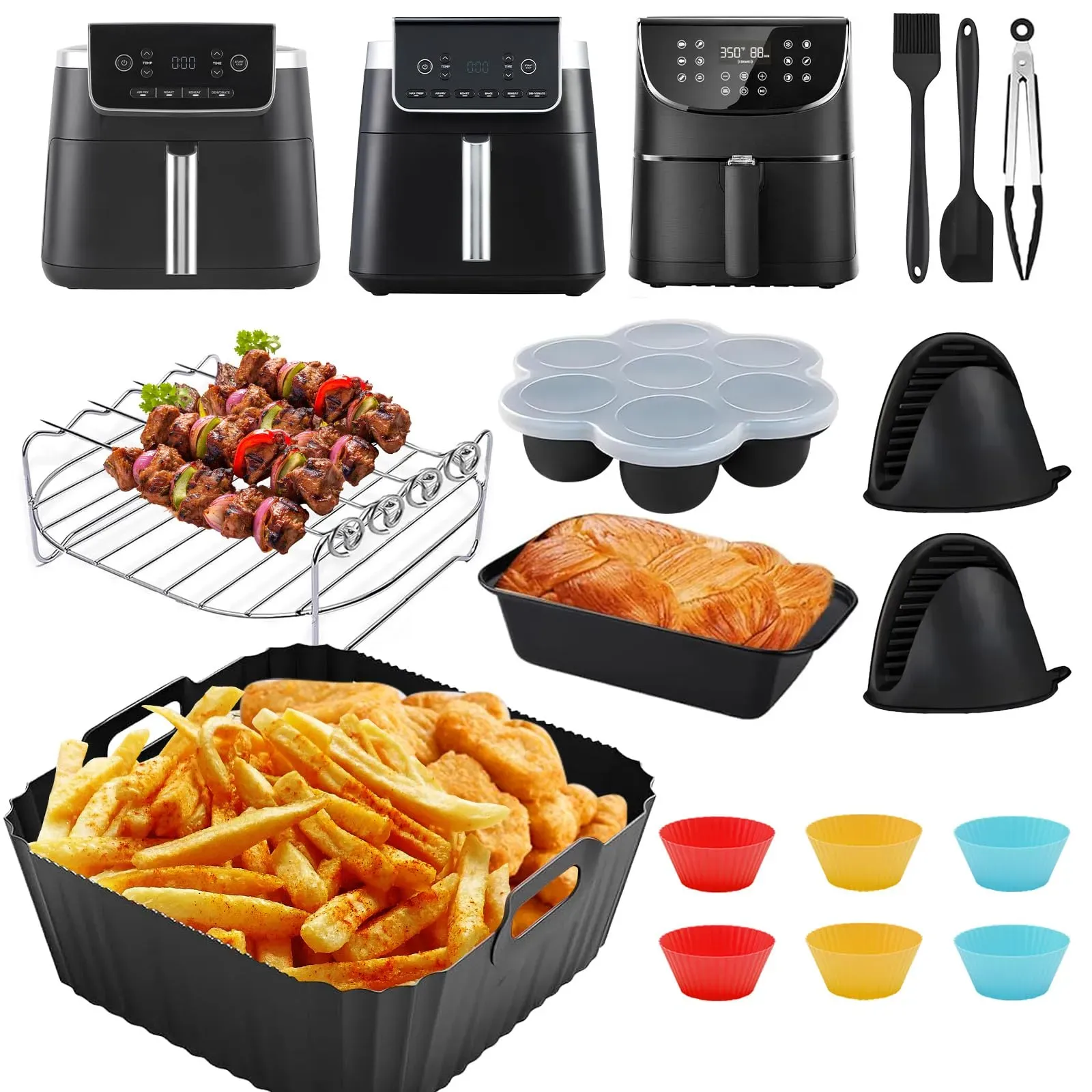 Kategorie: Küchengeräte-Zubehör - Nvseaty - Umfangreiches Zubehör Set für Ninja Heißluftfritteuse AF180EU Max Pro 6,2 L Dieses Komplettset enthält alles, was Sie für die perfekte Nutzung Ihrer Ninja Heißluftfritteuse benötigen:1 Silikon Backform (23x23x8 cm), 6 farbige Muffinförmchen (rot, gelb, blau), 1 Paar hitzebeständige Silikonhandschuhe, 1 Spatel, 1 Zange und 1 Pinse, 1 Grillrost, 1 Edelstahl-Brotform, 1 Silikon-Babykostform. Ideal für Backen, Grillen, Frittieren und mehr! Hochwertige Silikonformen für vielfältige Zubereitungsmöglichkeiten Die enthaltenen Silikonformen sind hitzebeständig, leicht zu reinigen und bieten perfekte Ergebnisse für Muffins, Brot, Aufläufe und Babykost. Die Backform passt perfekt in die Ninja Heißluftfritteuse AF180EU und ermöglicht gleichmäßiges Garen ohne Anbrennen. Praktische Accessoires für sicheres und einfaches Kochen Mit den hitzebeständigen Silikonhandschuhen können Sie heiße Einsätze sicher entnehmen. Der Spatel, die Zange und der Pinsel unterstützen Sie bei der Zubereitung und dem Servieren Ihrer Lieblingsgerichte. Der Grillrost sorgt für knusprige Ergebnisse beim Grillen und Braten. Kompatibel mit Ninja Heißluftfritteuse Max Pro 6,2 L AF180EU Dieses Set wurde speziell für die Ninja Heißluftfritteuse AF180EU entwickelt und ist perfekt auf deren Maße abgestimmt. Es ist auch ideal für andere Ninja Airfryer-Modelle geeignet, die ähnliche Abmessungen aufweisen. Perfekt für gesundes Kochen und Backen ohne zusätzliches Fett Mit diesem ... ![]() ![]()