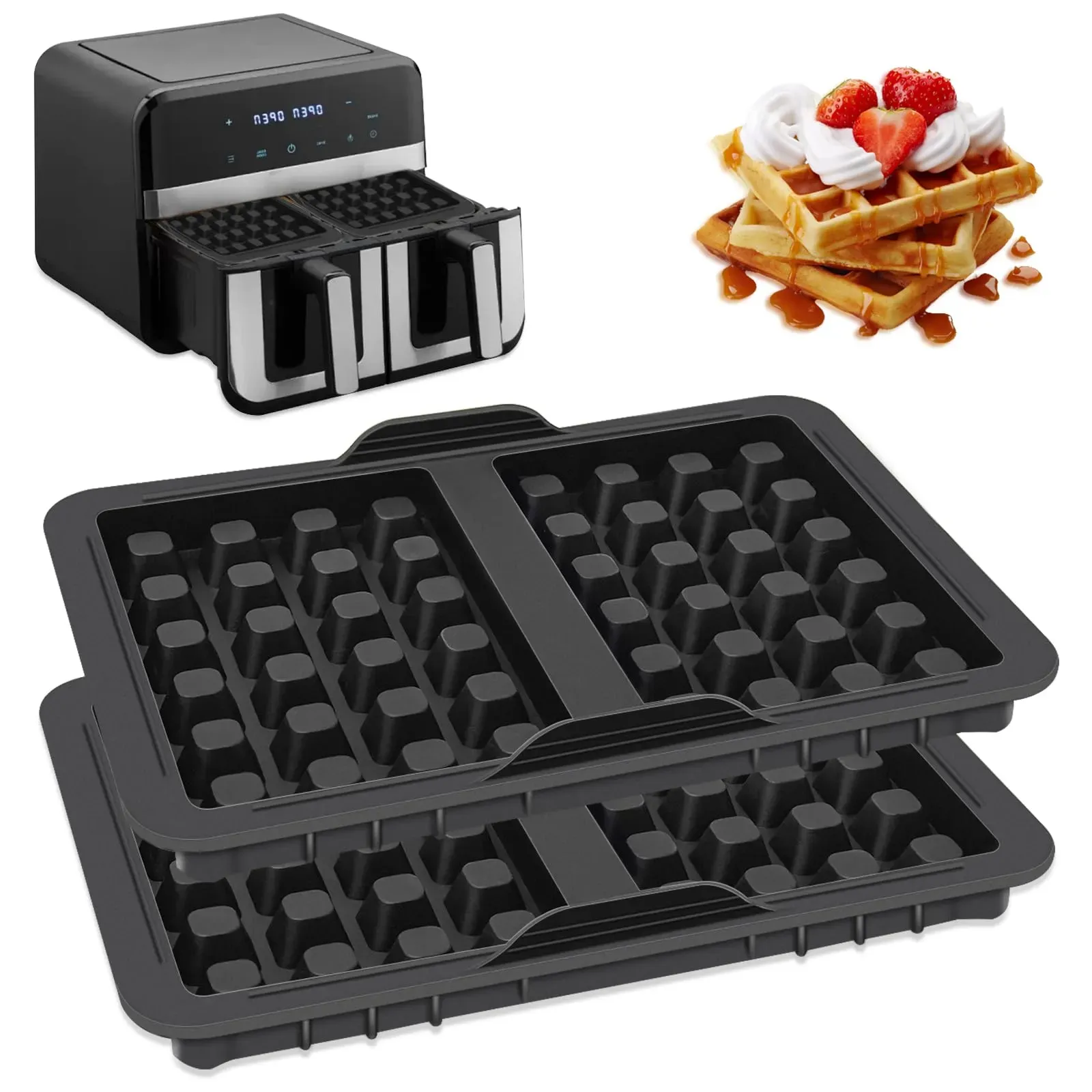 Auf Lager Versand durch AmazonDUBUOZA 2 Stück Waffeleinsatz Heißluftfritteuse Zubehör,Silikon Belgische Waffelform,Kompatibelmit Ninja AF400EU, AF451EU, SL400EU, und AF500DE,Wiederverwendbar
