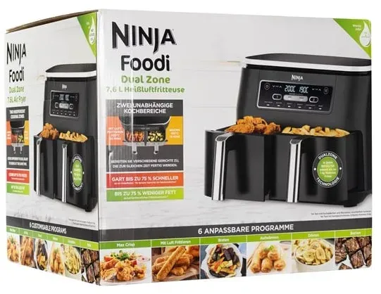 Zustand: Neu - Heißluftfritteusen - Ninja - AF180EUWH - EAN: 0622356303859 EAN: 6223563038592 - Große Heißluftfritteuse mit einer Schublade für bis zu 4 Hähnchenbrüste Gesünderes Frittieren: bis zu 75 % weniger Fett als bei herkömmlichen Frittiermethoden 6 Garfunktionen: Heißluft-Frittieren, Max Crisp, Backen, Braten, Dörren, Aufwärmen Inklusive spülmaschinenfester 6,2-Liter-Schublade, Crisper Gittereinsatz und Rezeptbuch - bei Amazon.de ![]() ![]() Ninja Foodi FlexDrawer AF500EU Zweizonen-Heißluftfritteuse 10,4 l - Neu mit 19% MwSt / OVP
