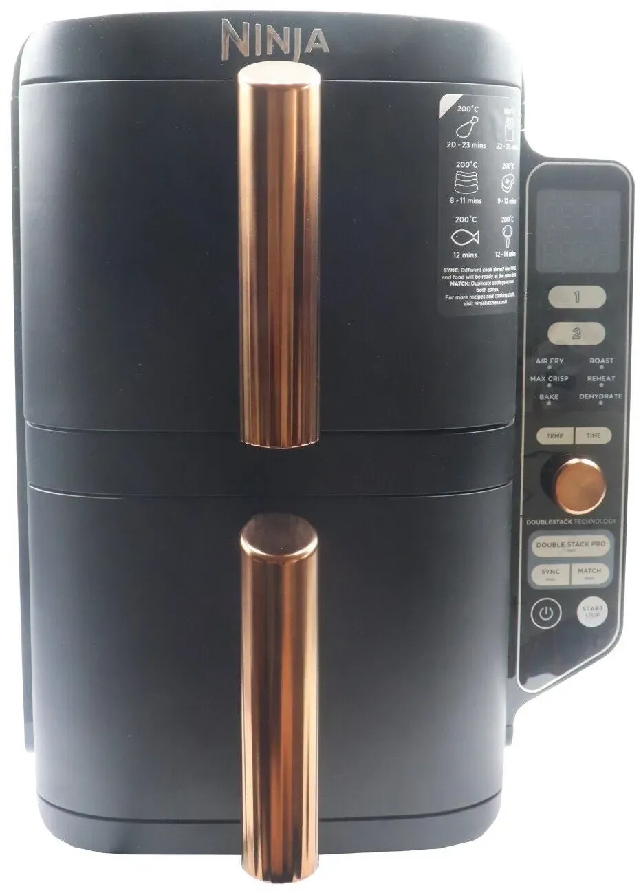 Verfügbarkeit: Sofort lieferbar - Kategorie: Fritteusen - Ninja - GTIN:0622356280822 - Stacked Air Fryer MAX 9.5l, 10.3 kg - 169,96 Euro bei Boomstore - gefunden von billiger.de Die Deluxe Schwarz & Kupfer Variante für 199 Euro von Retech-Shop ist eine Premium-Option mit stilvoller Optik. ![]() ![]() Ninja SL400EUCP Deluxe Schwarz & Kupfer Double Stack XL 2-Ebenen Heißluftfritteuse 9,5 L