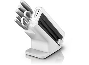 lieferbar-in 1-2 Werktagen bei dirNINJA Messerblock Ninja StaySharp Messerblock mit integriertem Schleifer K62006EUWH (7tlg), rostfreier deutscher Edelstahl, Erl-Design, integrierter Schleifer weiß