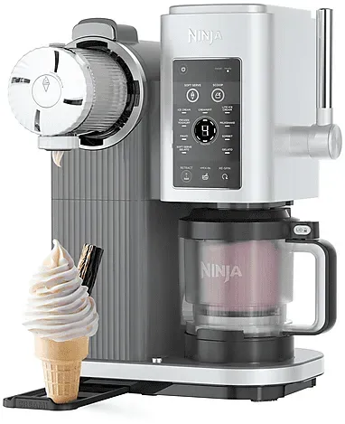 Auf Lager Versand durch AmazonNinja CREAMi Scoop & Swirl Eismaschine mit 2 Behältern, 13 Funktionen, für Eiscreme, Softeis, Gelato, Sorbet, Milchshakes und mehr, mit Mix-In-Funktion, Platinsilber, NC701EU