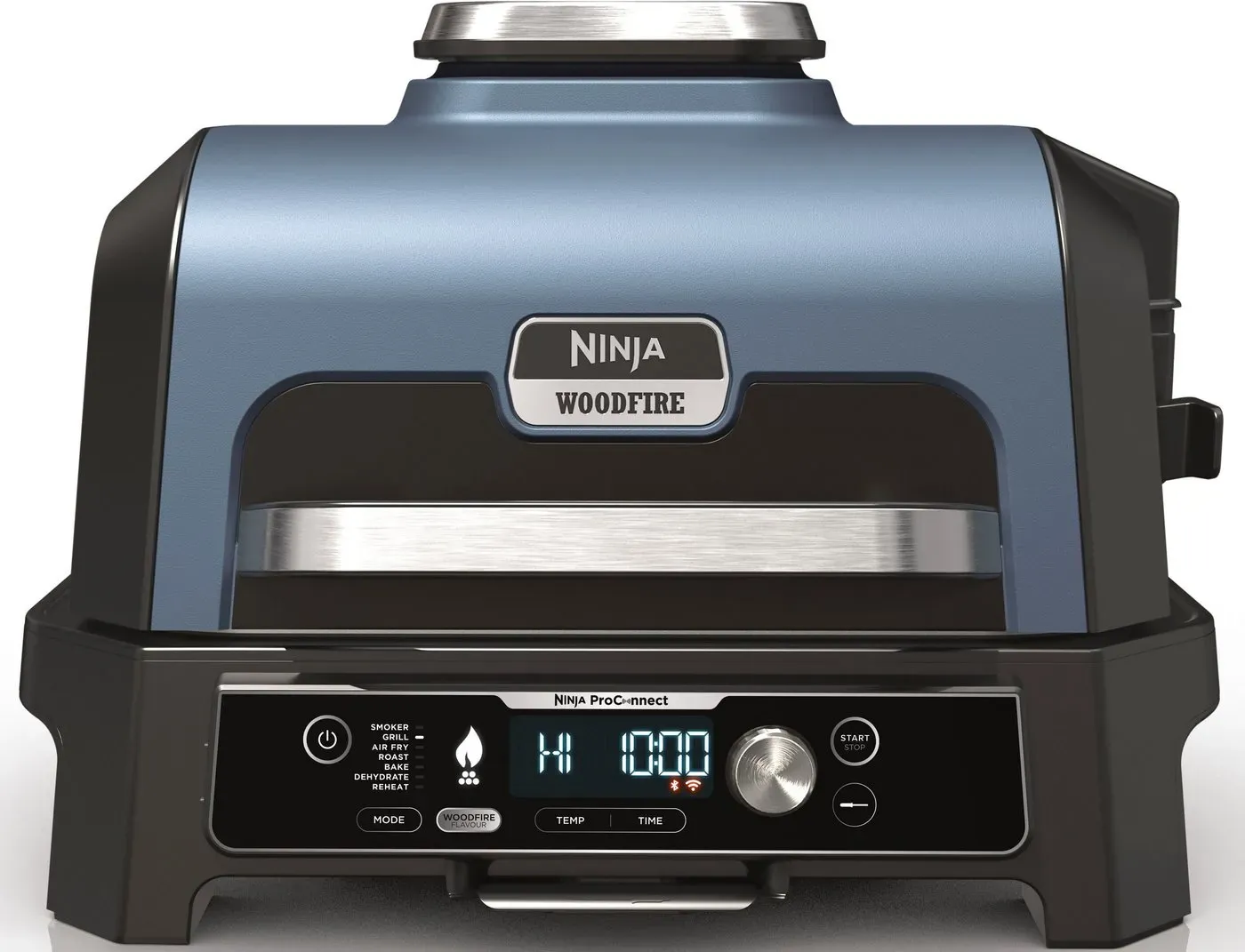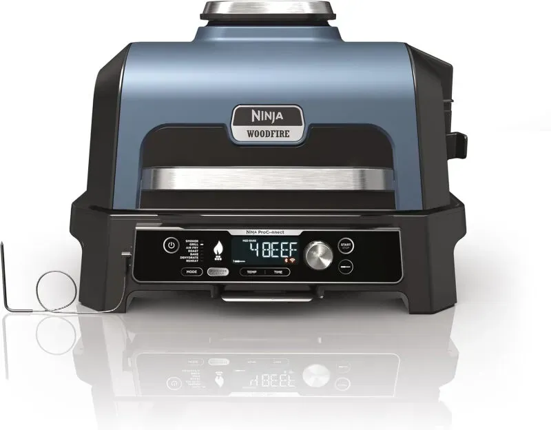 Auf Lager Versand durch AmazonNinja Woodfire Pro Connect XL Elektrischer BBQ Smoker Grill, App-Steuerung, digitaler Temperaturfühler, Rippenrost, Deckel, großer 7-in-1 Outdoor Grill & Heißluftfritteuse, blau & schwarz OG901EUAMZ