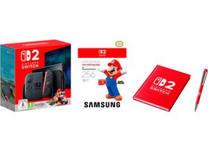 Unterhaltungselektronik Lifestyle Technik - - Nintendo Switch 2 + Mario Kart World - Der Start in die neue Gaming ära Die neue Nintendo Switch 2 begeistert mit stärkerer Performance und brillanter Grafik. Im Bundle mit Mario Kart 8 Deluxe erlebst du temporeiche Rennen und ultimativen Spielspaß - jederzeit und überall. Top Technik 4K Gaming Mit dem neuen Nvidia Tegra T239 Chip, 12 GB RAM und 256 GB internem Speicher bietet die Switch 2 hochauflösende Grafik: 120 Hz im Handheld und bis zu 4K [at] 60 fps im Dock — für ein visuelles Upgrade. Smartes Multiplayer dank GameChat Die Joy‑Con 2 mit magnetischem Anschluss und Maus‑Modus ermöglichen einfachen GameChat - per Sprache oder Video. Inklusive Bildschirme teilen, um gemeinsam zu spielen - ideal für Freunde und Familie. Mario Kart World - Der perfekte Einstieg Das Mario Kart World Bundle enthält das neue Open‑World Rennspiel, das mit 40+ Fahrern, dynamischem Wetter und 24 Spieler Modus verführt. Direkt starten und sofort gemeinsam Spaß haben., Farbe: Farbbezeichnung: schwarz, Bestandteile: Anzahl Controller im Lieferumfang: 2, Spiele im Lieferumfang: Mario Kart World, Controller im Lieferumfang: Joy-Con 2 Controller, Datenträger Spiele: Softwarekarte, Downloadplattform Spiele: Nintendo eShop, Lieferumfang: Samsung microSDXC EXPRESS 256 GB (Mario Design) Speicherkarte, Nintendo Switch 2-Station, Joy-Con 2 (L) + Joy-Con 2 (R), Joy-Con 2-Handgelenksschlaufen, Joy-Con 2-Halterung, HDMI-Kabel, Netzteil, Notizbuch, Stift, ... Dieses Bundle bietet die Konsole und das Mario Kart World Set zu einem fairen Preis. ![]() ![]()