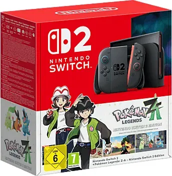 Kategorie: Konsolen - Nintendo - GTIN:0045496321529 - Der großzügige 7,9-Zoll-Bildschirm bietet dir flüssiges Gameplay, wann und wo du willst. Dank des hochauflösenden LCD-Bildschirms mit HDR-Unterstützung und bis zu 120 fps kannst du deine Spiele noch detaillierter und klarer erleben. über die beiliegende Station verbindest du die Nintendo Switch 2-Konsole mit deinem Fernseher und erlebst so noch detailliertere Bilder in Auflösungen bis zu 4K.* Neuer Aufsteller mit frei anpassbarem Sichtwinkel Mit dem großen, stabilen Aufsteller kannst du deine Nintendo Switch 2 im Tisch-Modus platzieren, wie du möchtest. Mit einem Neigungswinkel von bis zu 150 Grad findest du immer eine komfortable Position. Perfekt, um gemeinsam zu spielen! An der Oberseite der Konsole befindet sich nun ein USB-C-Anschluss, zusätzlich zu dem an der Unterseite. Schließe das beiliegende Netzteil an und schon kannst du deine Konsole aufladen, während du im Tisch-Modus spielst. Wir stellen vor: die neuen Joy-Con 2-Controller, die sich ganz leicht anschließen und entfernen lassen. Starke Magnete bieten den Controllern festen Halt an der Konsole. Um sie zu entfernen, drückst du einfach den Entriegelungsknopf auf der Rückseite und schon kannst du sie ganz leicht abnehmen! Dank des optischen Sensors an der Seite jedes Joy-Con 2-Controllers kannst du den Maus-Modus auf Oberflächen wie einem Tisch oder deinem Hosenbein verwenden. Beide Joy-Con 2-Controller können gleichzeitig im Maus-Modus verwendet werden, was ... Dieses Bundle ist ideal für Pokémon-Fans, da es die Nintendo Switch 2 Konsole zusammen mit dem Spiel Pokémon Legenden: Z-A anbietet. Mediamarkt .de Nintendo Switch 2 + Pokémon-Legenden: Z-A