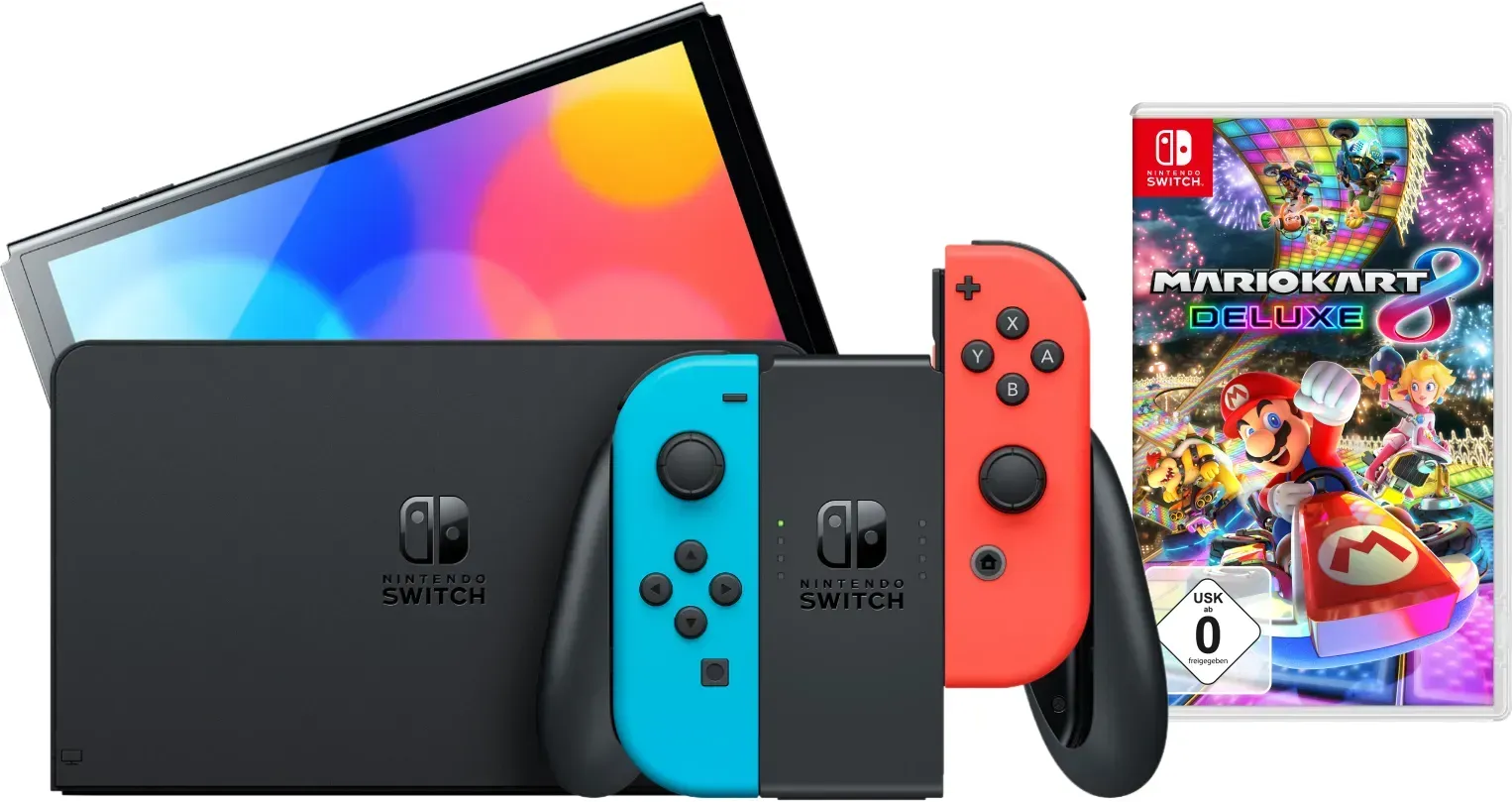 Kategorie: Konsolen - Nintendo - GTIN:0045496453633 - Nintendo Switch OLED Mario-Edition rot - 358,04 Euro bei Office Partner GmbH - gefunden von billiger.de Ein Bundle-Angebot mit der weißen Nintendo Switch OLED und Mario Kart 8 Deluxe. ![]() ![]() Nintendo Switch OLED weiß + Mario Kart 8 Deluxe