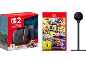 Nintendo Switch Spielkonsole Spielkonsolen - EAN:0045496321529 - Nintendo Switch 2 Erleben Sie die nächste Generation des Spielens mit der Nintendo Switch 2 - einem innovativen Handheld- und Heimspielsystem, das Ihre Gamerfahrung revolutionieren wird. Die Nintendo Switch 2 kombiniert die Flexibilität des ursprünglichen Switch mit neuen, leistungsstarken Features, die für ein noch intensiveres Spielerlebnis sorgen. Genießen Sie Spiele in beeindruckender 4K-Auflösung und lebendigen Farben, sowohl im TV-Modus als auch im Handheld-Betrieb. Die optimierte GPU sorgt für flüssigere Spielabläufe und realistischere Grafiken. Spielen Sie länger und ohne Unterbrechungen! Die Nintendo Switch 2 bietet eine verbesserte Akkuleistung, die es Ihnen ermöglicht, Ihre Lieblingsspiele bis zu 10 Stunden am Stück zu genießen - ideal für unterwegs. Lassen Sie sich von einer Vielzahl an neuen und exklusiven Titeln begeistern, die speziell für die Nintendo Switch 2 entwickelt wurden. Klassiker und neue Abenteuer vereinen sich auf dieser Plattform. Die neuen Joy-Cons bieten präzise Steuerung dank verbesserter haptischer Feedback-Technologie und erweiterten Steuerungsoptionen. Die neuen Joy-Con 2-Controller werden per Magnetverbindung befestigt. Beide Controller können in kompatiblen Spielen sogar als Maus eingesetzt werden. Teilen Sie Ihr Spielerlebnis mit Freunden und Familie. Die Nintendo Switch 2 ermöglicht nahtlosen Multiplayer-Modus über lokale und Online-Verbindungen, sodass Sie jederzeit ... Dieses Bundle der Nintendo Switch 2 mit Mario Kart World und Donkey Kong Bananza bietet ein umfassendes Spielerlebnis. ![]() ![]() NINTENDO SWITCH 2 Konsolen-Set "Switch 2 + Mario Kart World + Donkey Kong Bananza", schwarz, B:27,2cm H:16,6cm T:1,39cm, Spielekonsolen, Topseller