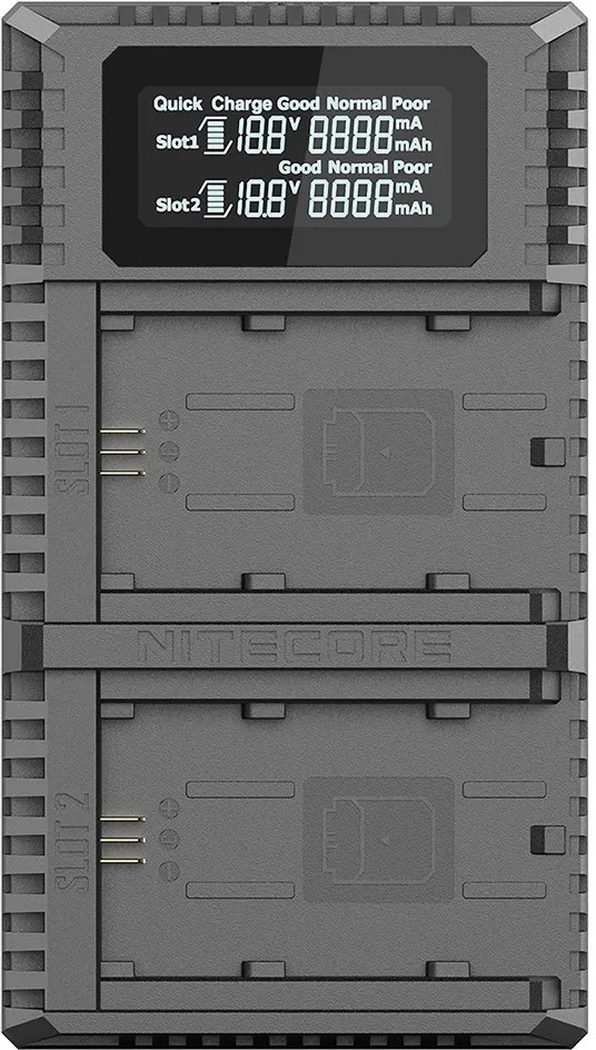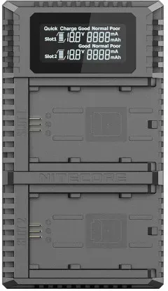 4 Händlerangebote bei billiger.de - Kategorie: Kamera Ladegeräte - Nitecore - 3 Stunden zum vollständigen Aufladen von 2 Batterien Zeigt Informationen zum Batteriestand, Spannung und Zustand an Verpolungsschutz und Kurzschlussschutz mit Powerbanks, 5 V Solarpaneelen und USB-Adaptern Max. Ausgangsleistung: 1200 mA - GTIN:6952506492862 ![]() ![]() Nitecore USN3 Pro Dual Charger für Sony NP-F