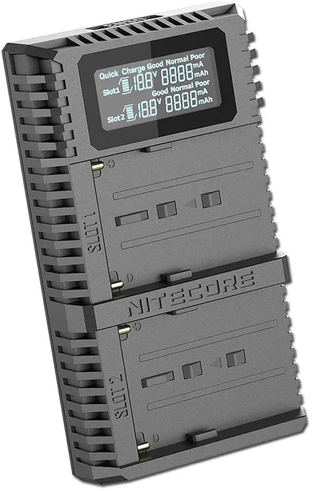 NITECORE - EAN: 6952506492862 - Der Nitecore USN3 Pro Dual Charger wurde speziell für das gleichzeitige Aufladen von zwei Sony NP-FM500H, NP-F730, NP-F750, NP-F770, NP-F970 und NP-F550 Lithium-Ionen-Akkus entwickelt. - bei foto-erhardt.de - aus Yadore Produktdaten Akkushop.d e