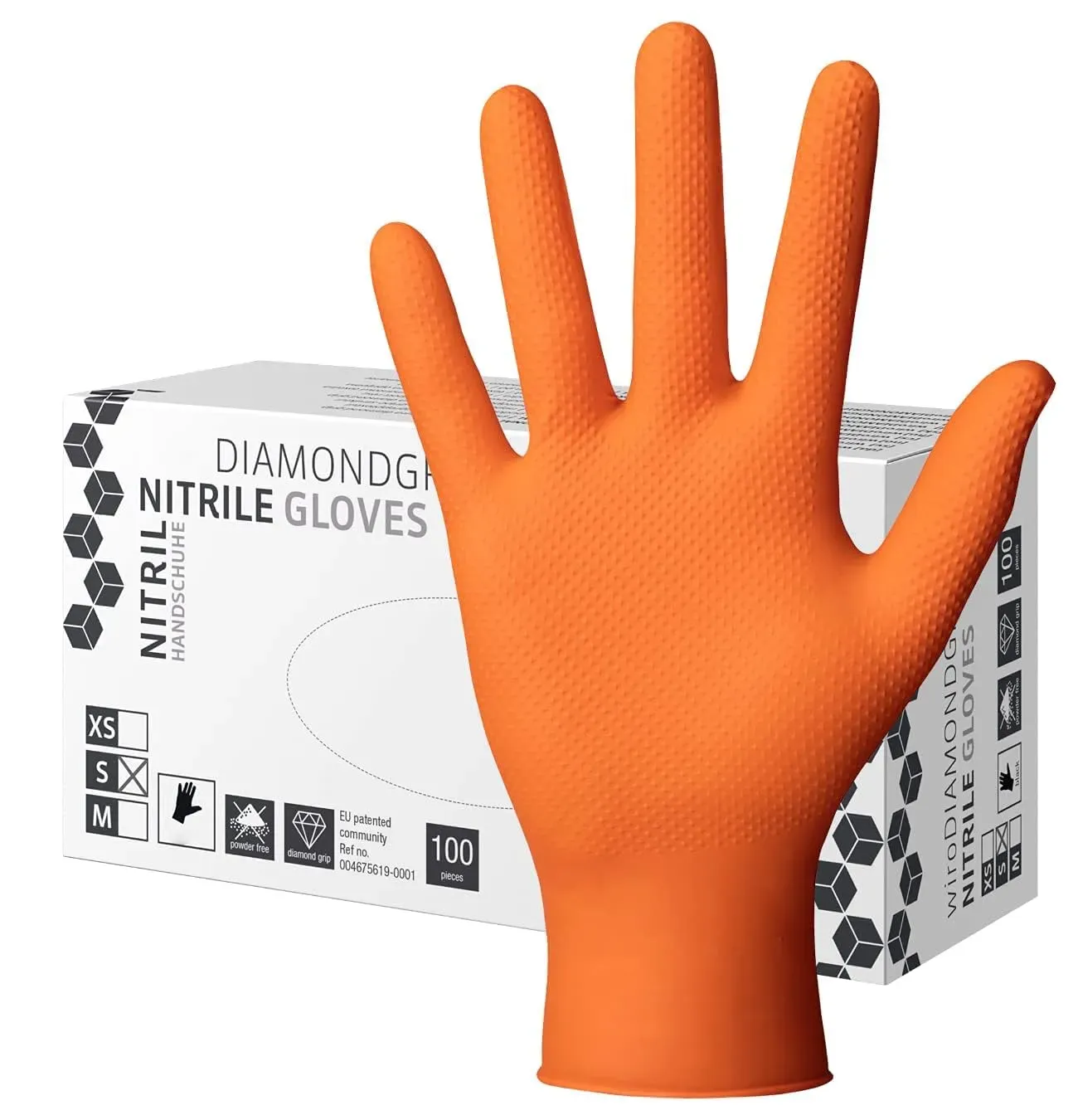 Arbeitskleidung & Arbeitsschutz Sicherheitskleidung & Ausrüstung - EAN:8859185202431 - Eigenschaften: Gogrip PRO Nitril-Handschuhe Die Einweghandschuhe aus Nitril GoGrip sind für Fachleute bestimmt und bewähren sich überall dort optimal, wo präzise Bewegungen, Griffsicherheit und Tragekomfort gefragt sind. Die Nitrilhandschuhe GoGrip sind ideal für Bau-, Montage-, Installations- und Heimwerkerarbeiten. Die beschichteten Einweghandschuhe aus Nitril mit Diamanttextur GoGrip gewährleisten Griffsicherheit, auch nassen Umgebungen, lassen sich leicht an- und ausziehen und reduzieren den Handschweiss. (805.002.005) - gefunden von Kelkoo Die Herrmann Nitril Handschuhe mit Diamanttextur bieten einen hervorragenden Grip und sind ideal für Montage- und Werkstattarbeiten. ![]() ![]() Herrmann Nitril Handschuh DiamantGrip Orange | Gr. M - 100 Stück | Perfekter GRIP Einweg Montage Schutzhandschuhe puderfrei latexfrei | Diamanttextur Nitril-Handschuhe
