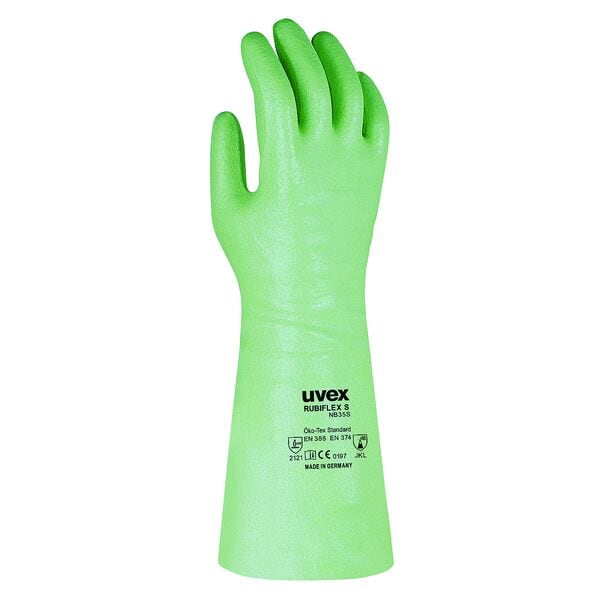 Kategorie: Arbeits- & Schutzkleidung - Herrmann - GTIN:4251729903004 - SICHERHEIT hochelastische Schutzhandschuhe aus 100% Nitril - EN 388 / EN 374 zertifizierte Sicherheitshandschuhe sorgen für optimalen Schutz vor mechanischen & chemischen Gefährdungen HAUTFREUNDLICHE UNTERSUCHUNGSHANDSCHUHE pulverfrei, hygienisch, geruchsneutral und zudem latexfrei - keine allergieauslösenden Proteine enthalten (ideal für Allergiker) PATENTIERTE DIAMANTPRäGUNG rundum texturiert - perfekter Fett und ölgriff, schützt vor Flüssigkeiten und Dreck - optimal als Werkstatthandschuh oder im Gebrauch mit Lebensmitteln ERGONOMISCHE PASSFORM erlaubt sicheres und angenehmes Tragegefühl - Einmalhandschuhe sind beidseitig tragbar - reduziert Schweißbildung VIELSEITIGE EINSATZGEBIETE Kraftfahrzeugtechnik, Medizin, Tiermedizin, Kosmetik, Werkstätte, Mechanik, Industrie, Klempnerei, Hausmeisterliche Arbeit oder als Tätowierhandschuh - 16,95 Euro bei Amazon Marketplace Automotive - gefunden von billiger.de Die UVEX Wasserdichten Arbeitshandschuhe "Profas Rubiflex NB 35 S" sind eine ausgezeichnete Wahl für Arbeiten in feuchten Umgebungen. ![]() UVEX Wasserdichte Arbeitshandschuhe »Profas Rubiflex NB 35 S« Größe 9 grün