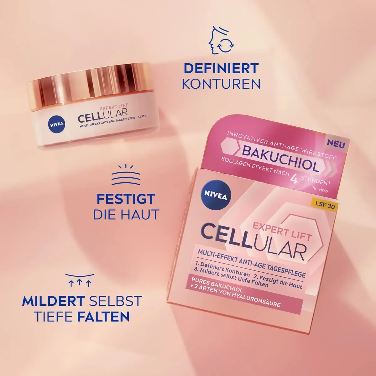 Kategorie: Tagespflege - NIVEA - GTIN:4005900933522 - NIVEA Cellular Expert Lift Multi-Wirkungs-Anti-Age-Tagespflege 50 ml ist eine klinisch bewiesene, leichtes Creme mit Bakuchiol, Hyaluronsäure und SPF 30, die die Haut strafft, Falten reduziert und innerhalb von nur 4 Stunden den Kollagenaufbau fördert bietet sichtbare Straffung und Sonnenschutz in einem Schritt. - 15,84 Euro bei Joybuy - gefunden von billiger.de Diese remodellierende Nachtcreme ist zu einem guten Preis erhältlich und ideal für die nächtliche Regeneration. ![]() ![]() Nivea Cellular Expert Lift Remodellierende Nachtcreme 50 ml