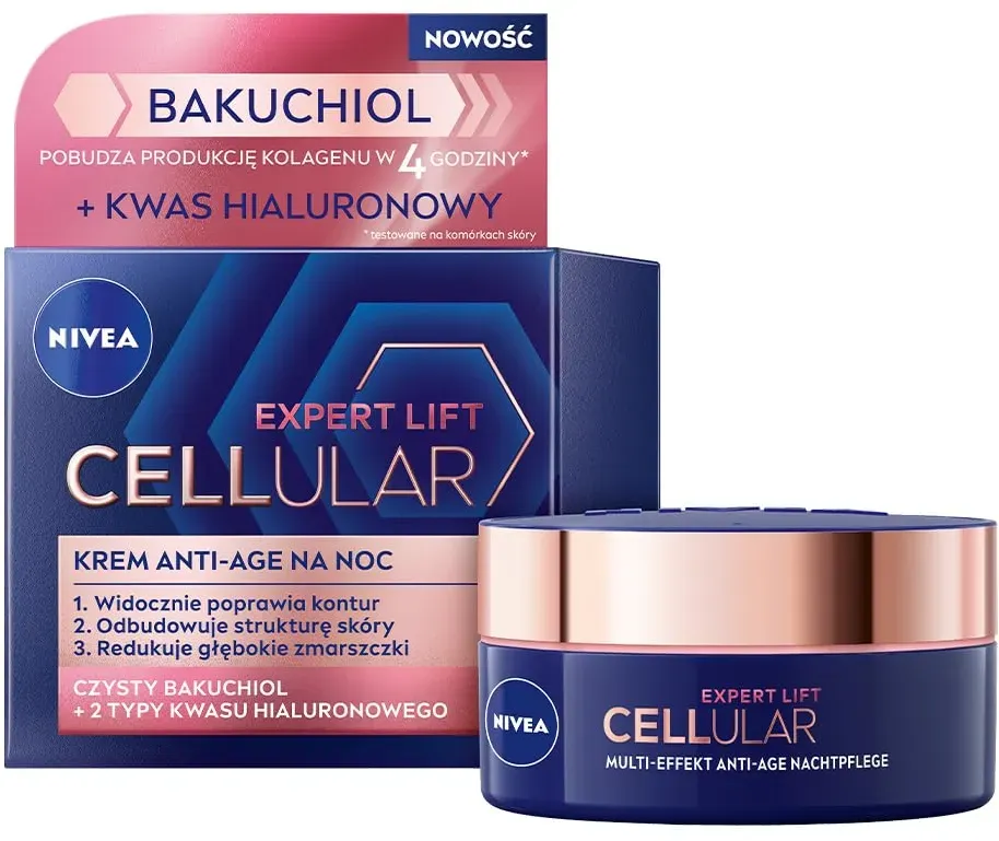 Auf Lager Versand durch AmazonNIVEA CELLULAR EXPERT LIFT Anti-Aging Nachtcreme Multidimensional 50 ml, Nachtgesichtscreme mit reinem Bakuchiol und 2 Arten von Hyaluronsäure, Anti-Falten-Nachtcreme