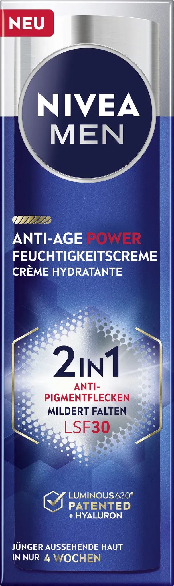 Auf Lager Versand durch AmazonNIVEA MEN Anti-Age 2in1 Power Tagespflege mit LSF 30, Gesichtspflege mit Hyaluron für Männer mit Anti-Aging-Effekt, Hautpflege mit LUMINOUS630® gegen Alters- und Pigmentflecken (50 ml)