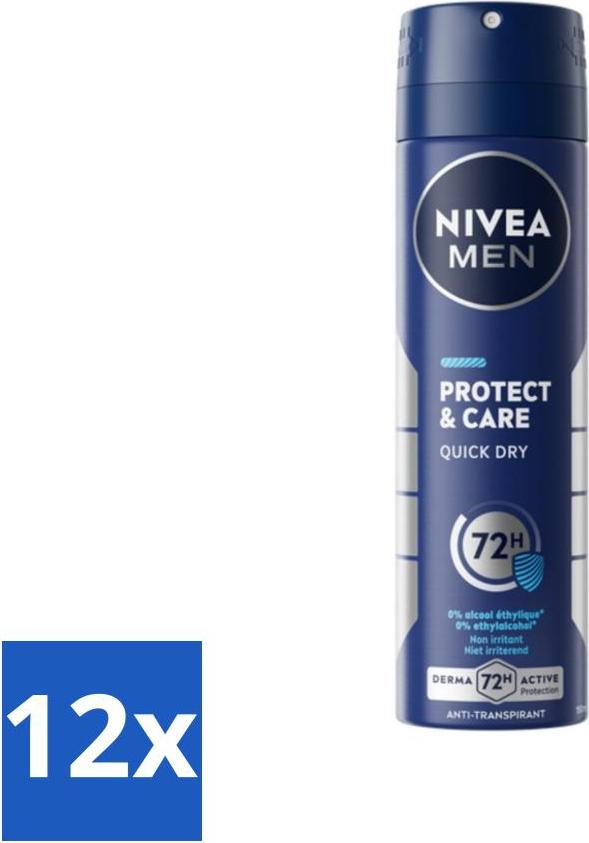Nivea - EAN: 8721418212077 - NIVEA MEN Deodorant Spray Protect & Care 48 Stunden Schutz 150 mlStarten Sie selbstbewusst in den Tag mit dem NIVEA MEN Protect & Care Deodorant Spray. Dieses leistungsstarke Antitranspirant schützt bis zu 48 Stunden zuverlässig vor Schweiß und Geruch. Die alkoholfreie Formel ist sanft zur Haut und angereichert mit dem pflegenden NIVEA MEN Care Complex. So bleiben Ihre Achseln geschützt und gepflegt ohne zu reizen.Ob unterwegs, beim Sport oder bei der Arbeit: Dieses Deodorant ist Ihr täglicher Begleiter für langanhaltende Frische und Komfort. Der maskuline, dezente Duft schenkt ein Frischegefühl, das den ganzen Tag anhält.Eigenschaften des NIVEA MEN Protect & Care Sprays:48 Stunden Schutz vor Schweiß und GeruchAlkoholfrei beugt Hautirritationen vorMit NIVEA MEN Pflegekomplex für gepflegte AchselnFrisch-maskuliner Duft, der lange anhält getestet hautverträglichInhalt: 150 mlZusammensetzung:Die Formel enthält wirksame Antitranspirantien kombiniert mit pflegenden Inhaltsstoffen, die die Haut schützen. Frei von Ethylalkohol, mit einer milden Duftkombination, die lang anhaltende Frische bietet, ohne die Haut auszutrocknen oder zu reizen.Warum NIVEA MEN Protect & Care Spray wählen?Lang anhaltender Schutz in einer hautfreundlichen FormelKomfort und Pflege in einem SprayPerfekt für Männer mit empfindlicher HautBewährte Qualität von NIVEA MENIdeal für die tägliche Anwendung zu Hause, bei der Arbeit oder unterwegsMit dem NIVEA Mit dem MEN Protect & Care ... Dieses 25er-Vorteilspack ist das größte verfügbare Angebot und bietet den besten Stückpreis für den absoluten Großverbrauch. ![]() kaufland.d e NIVEA Men Deodorant Spray Protect & Care 150 ml - Vorteilspack - 25 Stücke