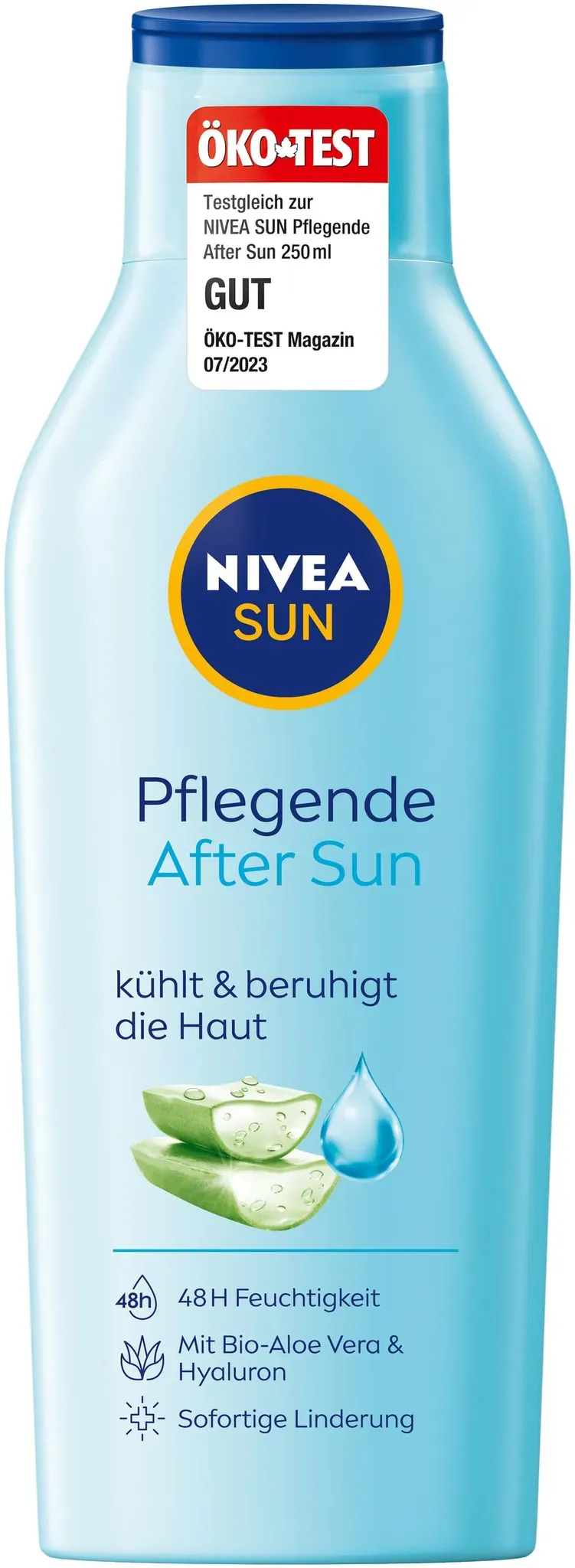 Auf Lager Versand durch AmazonNIVEA SUN Pflegende After Sun Lotion (250 ml), Lotion mit hautberuhigender Wirkung nach dem Sonnenbad, After Sun mit Bio-Aloe Vera und Hyaluron für 48h Feuchtigkeit