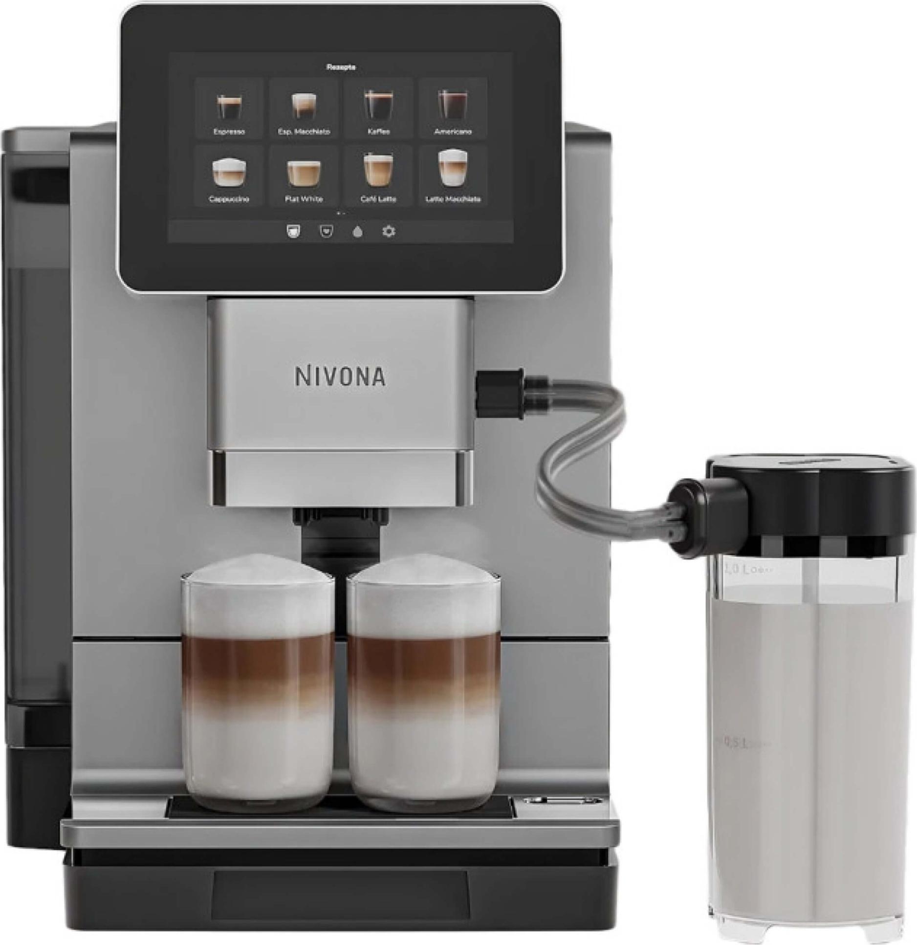 Kategorie: Kaffeevollautomaten - NIVONA - GTIN:4260083469033 - ? Optimale Wasserqualität für besten Kaffeegenuss – Mit Extreme Mode für kalkhaltiges Wasser: kürzere Entkalkungsintervalle sorgen für langanhaltend guten Geschmack. ? Wassertankbeleuchtung in 8 Farben – inklusive Disco Mode für besondere Momente. ? Perfekter Milchschaum – egal ob Kuhmilch oder Pflanzendrink – Die Maschine passt Temperatur & Dampfdruck automatisch an. Dank EasyTemperature immer die richtige Temperatur, unabhängig von der Ausgangskälte der Milch. ? Langlebig & hochwertig verarbeitet – Tropfblech aus Zamak (Zink, Aluminium, Magnesium & Kupfer) für Stabilität und edle Oberfläche. ? Automatisches Einschalten – Ihre NIVONA ist schon wach, bevor Sie es sind – und am Wochenende weiß sie auch, wann sie ausschlafen darf. ? Maximaler Bedienkomfort – Das größte Display im NIVONA-Sortiment: 7' Touchscreen für einfaches Tippen, Auswählen und Speichern Ihrer Lieblingsgetränke. ? Vielfalt wie im Café – Die 9000er-Serie bietet die meisten vorgespeicherten Rezepte aller NIVONA-Modelle: von Flat White über Espresso Macchiato bis hin zu Klassikern. ? Schnelle & hygienische Reinigung – Herausnehmbare Brüheinheit RomaticaPlus für volle Kontrolle und leichte Reinigung unter fließendem Wasse ? Kein Umstecken beim Milchsystem – Mit Doppelmilchschlauch und easyclean+: automatische oder manuelle Reinigung per Knopfdruck. - 1649,00 Euro bei Amazon Marketplace Kitchen - gefunden von billiger.de ![]() ![]() Nivona Kaffee-Vollautomat - CafeRomatica NIVO eBay 9103 P30
