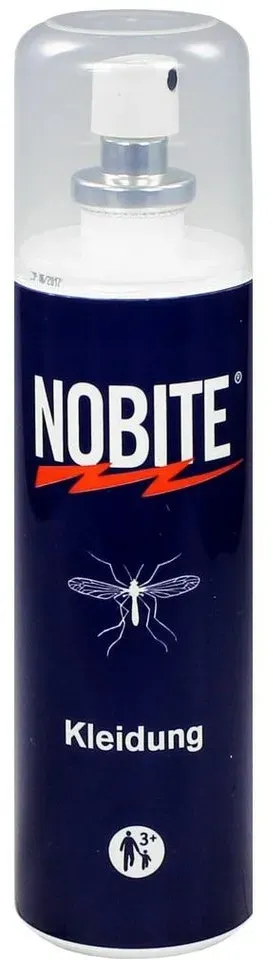 NOBITE - EAN: 9006316002005 - Anwendungsgebiet von Nobite Kleidung SprayNobite Kleidung Spray ist ein tropentaugliches Repellent, welches nachweislich das Infektionsrisiko für Malaria, Dengue-Fieber, Japan-B-Enzephalitis und vielen anderen Krankheiten senkt, welche durch stechende Insekten übertragen werden können. Auch Zecken können mit Nobite Kleidung Spray wirksam abgewehrt werden. Nobite Kleidung Spray in Kombination mit Nobite Haut bietet einen allumfassenden Schutz.Wirkungsweise von Nobite Kleidung SprayDas in Nobite Kleidung Spray enthaltene Permethrin wird von den Insekten über die Hautoberfläche aufgenommen und wirkt anschließend in deren Körper als Nervengift.Wirkstoffe / Inhaltsstoffe / Zutaten1g Spray von Nobite Kleidung Spray enthält: PermethrinGegenanzeigenBei bekannter überempfindlichkeit gegenüber einem der oben genannten Inhaltsstoffe sollte Nobite Kleidung Spray nicht angewendet werden. Während Schwangerschaft und Stillzeit ist vor der Anwendung dieses Produktes ein Arzt zu konsultieren.DosierungSchütteln Sie Nobite Kleidung Spray vor der Anwendung gut und sprühen Sie das Kleidungsstück anschließend aus einer Entfernung von ca. 40 cm ein. Lassen Sie dieses dann einwirken und trocknen. Das Spray hinterlässt auf Ihrem Kleidungsstück weder Geruch noch Farbe und ist für alle Stoffe unbedenklich. Die Wirkungsdauer beträgt bis zu 4 Wochen. Nach dem Waschen erneut imprägnieren. Nobite Kleidung Spray ist geeignet für alle Personen ab dem 3. Lebensjahr.HinweiseDer ... Ein beliebtes 100 ml Spray auf Amazon, das von vielen Händlern angeboten wird. ![]() ![]() NOBITE Kleidung, Insektenschutz zur Imprägnierung von Textilien (100 ML)