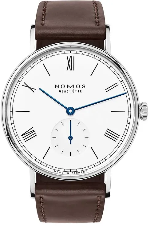 Nomos ludwig 38 META PreisvergleichMit dem Meta-Preisvergleich suchen Sie gleichzeitig bei den großen Preisvergleich Portalen!Jetzt live Suche nach nomos ludwig 38 starten! Nomos ludwig 38 KaufberatungDie Nomos Ludwig 38 ist eine klassische, elegante Armbanduhr mit einem Edelstahlgehäuse von ca. 37,5 bis 38 mm Durchmesser und einer flachen Bauhöhe um 6,7 bis 7 mm. Sie zeichnet sich durch ein weißes Zifferblatt mit römischen Ziffern und einer kleinen Sekunde aus. Das Uhrglas besteht aus kratzfestem Saphirglas, das Gehäuse ist wasserdicht bis etwa 3 bar (30 Meter). Die Uhr wird meist mit einem hochwertigen Lederarmband (z. B. Cordovan oder Chicago-Leder) und Faltschließe geliefert. Das Uhrwerk ist entweder ein Handaufzugskaliber Alpha oder ein Automatikwerk DUW 3001 mit ca. 43 Stunden Gangreserve, je nach Modellvariante[1][2][3][4][6][7]. Wichtige Produktmerkmale und Beliebtheit: