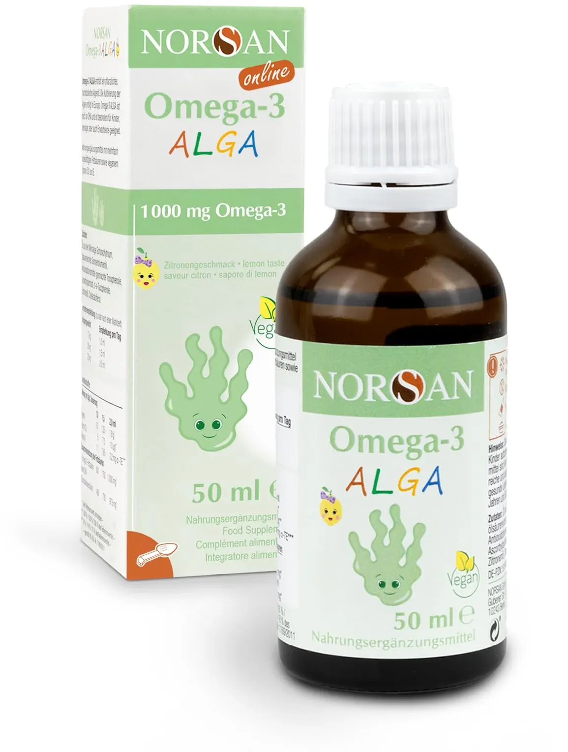 Zustand: Neu - 379,00 € / l - Omega-3 Omega-3 Öl - NORSAN NORSAN GmbH, Plauener Staße 163-165, Haus E, 13053 Berlin - - EAN: 4260698151316 - œ”ï¸GESUNDE ENTWICKLUNG FÜR KINDER MIT Omega-3 AUS ALGENÖL - Unser NORSAN Omega-3 ALGA aus Algenöl ist speziell für Kinder konzipiert, um eine gesunde Entwicklung von Gehirn, Augen und Herz zu unterstützen. œ”ï¸OMEGA-3 ALGENÖL REICH AN DHA - Unser Omega-3 Algenöl ist besonders reich an DHA, einer wichtigen Omega-3-Fettsäure für die kognitive Entwicklung. œ”ï¸LEICHTE DOSIERUNG - Unser NORSAN Algenöl ALGA enthält einen praktischen Löffel, der eine mühelose Dosierung ermöglicht. Mit dem NORSAN Omega-3 Öl stellen Sie sicher, dass Ihr Kind täglich die empfohlenen 1.000 mg Omega-3 aus Algen erhält. œ”ï¸VITAMIN D FÜR STARKE KNOCHEN UND IMMUNSYSTEM - Unser Algenöl Kinder enthält pro Tagesdosierung 400 I.E. Vitamin D, um Knochen, Muskeln, Zähne und das Immunsystem zu stärken. œ”ï¸KINDERFREUNDLICHER ZITRONENGESCHMACK Omega-3 ALGENÖL FLÜSSIG - Ohne Zucker mit seinem sanften Zitronengeschmack macht unser Omega-3 vegan Kinder Öl die Einnahme für Kinder angenehm und schmackhaft. - Verkäufer: NORSAN im amazon.de Marketplace ![]() ![]() NORSAN Omega 3 ALGA öl vegan 50ml - hochdosiertes Omega 3 vegan für Kinder 1.000mg pro Portion -Algenöl reich an DHA - Tagesdosis 2 ml ab 35 kg