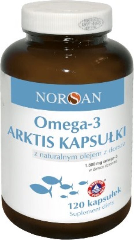EAN: 0781490329986 - Norsan Omega-3 Arktis Kapseln 120 Kapseln ist ein hochwertiges Nahrungsergänzungsmittel auf Basis von natürlichem Fischöl aus arktischen Fischen.Das in den Kapseln enthaltene Fischöl stammt aus nachhaltiger Fischerei, was durch die nachhaltiger Fischerei belegt wird.Jede Kapsel enthält Fischöl, das reich an ungesättigten Omega-3-Fettsäuren ist und auf schonende Weise extrahiert wird, um seine natürlichen Eigenschaften zu erhalten. Dank einer sorgfältigen Herstellungstechnologie sind die Kapseln leicht zu lagern und zu verwenden. Ihr natürlicher Ursprung und ihre hohe Bioverfügbarkeit sind die wichtigsten Stärken des Produkts.DHA-Säure unterstützt die Aufrechterhaltung eines angemessenen Triglyceridspiegels im Blut, während Vitamin E zum Schutz der Zellen vor oxidativem Stress beiträgt.Zusammenfassend lässt sich sagen, dass Norsan Omega-3 Arktis Kapseln 120 Kapseln für diejenigen geeignet sind, die nach natürlichen und einfachen Lösungen suchen. Die Reinheit der Zusammensetzung, die sorgfältig ausgewählten Rohstoffe und der Verzicht auf unnötige Zusatzstoffe unterscheiden dieses Produkt von anderen. Natürliches arktisches Kabeljauöl in Form von Gelkapseln.BESCHREIBUNG:Nahrungsergänzungsmittel auf Basis von arktischem Kabeljauöl höchster Qualität mit einem hohen Gehalt an EPA- und DHA-Säuren.BESTANDTEILE:Natürliches Kabeljauöl (70,8 %), Gelatine, Feuchthaltemittel: Glycerin, Antioxidationsmittel: Rosmarinextrakt, gemischte und ... Dieses 3er-Pack Kapseln ist ideal für eine längerfristige Versorgung und bietet einen Mengenrabatt. ![]() ![]() 3x Norsan Omega-3 Arktis Kapseln 3x120 St