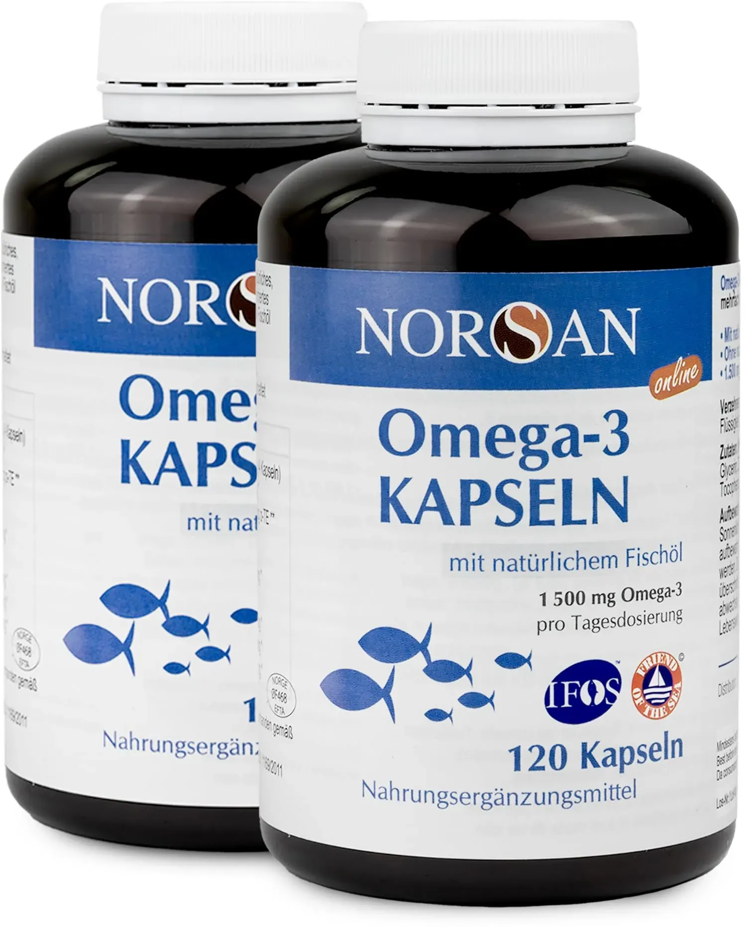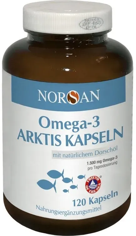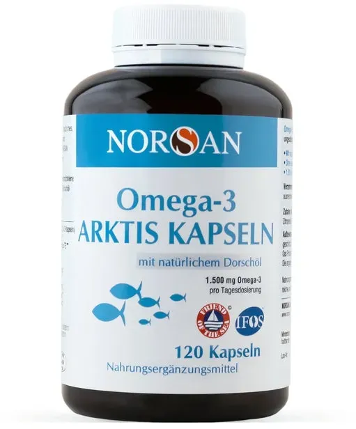 Kategorie: Nahrungsergänzungsmittel - NORSAN - GTIN:4260698151033 - 2.000mg PREMIUM OMEGA 3 NORSAN KAPSELN - Der Kabeljau, das weiße Gold Norwegens, ist von Natur aus reich an Omega-3 Fettsäuren. Die Norsan Omega-3 Kapseln werden von Fischen aus norwegischen Gewässern gewonnen. NACHHALTIGER WILDFANG - NORSAN Arktis Omega3 Kapseln hochdosiert werden nachhaltig produziert. Die norwegischen Fischereien unterliegen sehr strengen & nachhaltigen Vorschriften. OMEGA 3 KAPSELN NORSAN 100% FRISCH Das Omega 3 wird innerhalb von 2h nach Fang verarbeitet. Dies sorgt für einen sehr niedrigen TOTOX-Wert (3,5). Das Omega 3 Fischöl ist für deinen Körper optimal aufnehm- & bioverfügbar. FISCHöL OMEGA 3 KAPSELN FüR HERZ, HIRN & AUGE - Laut der EFSA wirken DHA & EPA im Premium Omega 3 ab einer Menge von 250mg täglich positiv auf die Herzfunktion, Sehkraft & das Gehirn aus. OMEGA 3 FISCHöLKAPSELN MIT ZERTIFIZIERTER QUALITäT - Unser NORSAN Omega-3 mit besonders hohem EPA & DHA Gehalt wurde mehrfach unabhängig laborgeprüft & zertifiziert unter anderem durch GOED & IFOS. - 26,50 Euro bei Amazon Marketplace Health & Personal Care - gefunden von billiger.de Dieses Angebot bietet eine einzelne Packung der hochdosierten Premium Total Omega 3 Kapseln für eine effektive Versorgung. ![]() ![]() NORSAN Premium Total Omega 3 Kapseln hochdosiert 120 Stück - 1.500mg Omega 3 pro Portion - Kapseln mit 707mg EPA & 368mg DHA-Fischöl aus nachhaltigem Wildfang