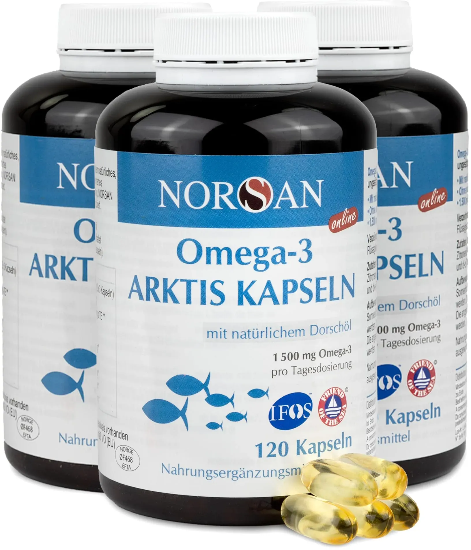 0,11 /St - Kategorie: Arzneimittel - NORSAN - GTIN:4150800301626 - PZN:80030162 - Norsan Omega 3 Arktis Kapseln 3X120 St - rezeptfrei - von NORSAN GmbH - - 360 St - 37,99 Euro bei DocMorris Apotheke - gefunden von billiger.de Ein Dreierpack der Premium Omega-3 Arktis Dorschöl Kapseln, das eine langfristige Versorgung zu einem fairen Preis ermöglicht. ![]() ![]() NORSAN Premium Omega-3 Arktis Dorschöl Kapseln 3x120 Kapseln - 1.500 mg Omega-3 pro Portion - Fischöl Kapseln aus nachhaltigem Wildfang