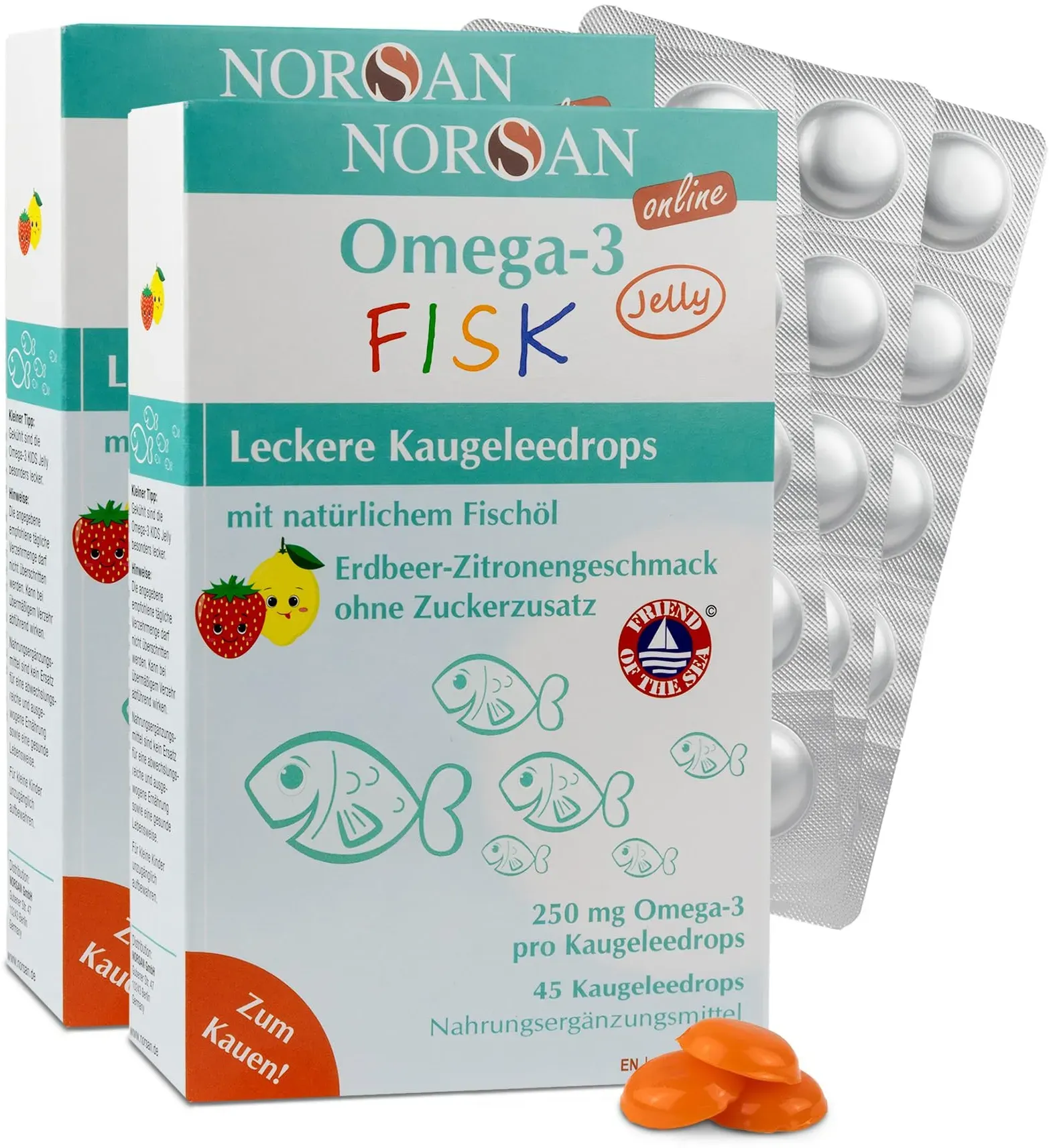 Zustand: Neu - 0,37 / Stck - Omega-3 Omega-3 l - NORSAN NORSAN - San Omega GmbH, Gubener Str. 47, 10243 Berlin, Deutschland - ONLINE_Jelly-45_IT_Parent - EAN: 4260698150135 - ️ 1.000 MG OMEGA-3 FISCHL FR KINDER - Die NORSAN FISK Omega-3 Gummibrchen enthalten hochdosiertes Omega-3 mit Kombination aus DHA & EPA fr ein ausgewogenes Verhltnis zur optimalen Versorgung deiner Kinder. ️ OMEGA 3 FIS JELLY - Omega-3 Jelly fr Kinder mit natrlichem Erdbeer-Zitronenaroma ohne Zuckerzusatz. ️ FR DIE GESUNDE ENTWICKLUNG DEINES KINDES - Laut der EFSA wirken DHA & EPA in Fischl ab einer Menge von 250 mg tglich positiv auf die Herzfunktion, Sehkraft & das Gehirn aus. ️ VERANTWORTUNGSBEWUSST DURCH 'FRIEND OF THE SEA' - Das FISK Omega-3 ist Friend of the sea zertifiziert & wird aus Fischen gewonnen, die aus Gewssern stammen, welche von FOS als nachhaltig zertifiziert sind. ️ NORSAN FISCHL MIT ZERTIFIZIERTER QUALITT - Unsere NORSAN Omega-3 FISK Jelly mit besonders hohem EPA & DHA Gehalt wurden mehrfach unabhngig laborgeprft & zertifiziert unter anderem durch GOED & IFOS. - Verkufer: NORSAN im amazon.de Marketplace Dieses Produkt ist speziell für Kinder konzipiert und bietet eine schmackhafte Alternative zu herkömmlichen Kapseln. ![]() ![]() NORSAN Omega 3 FISK Jelly 45 hochdosiert-Omega 3 für Kinder (250 mg pro Kaugeleedrops) - Omega öl mit EPA & DHA-Tagesdosis mit Zitrone-Erdbeer-Geschmack 4 Kapseln Premium für Kinder