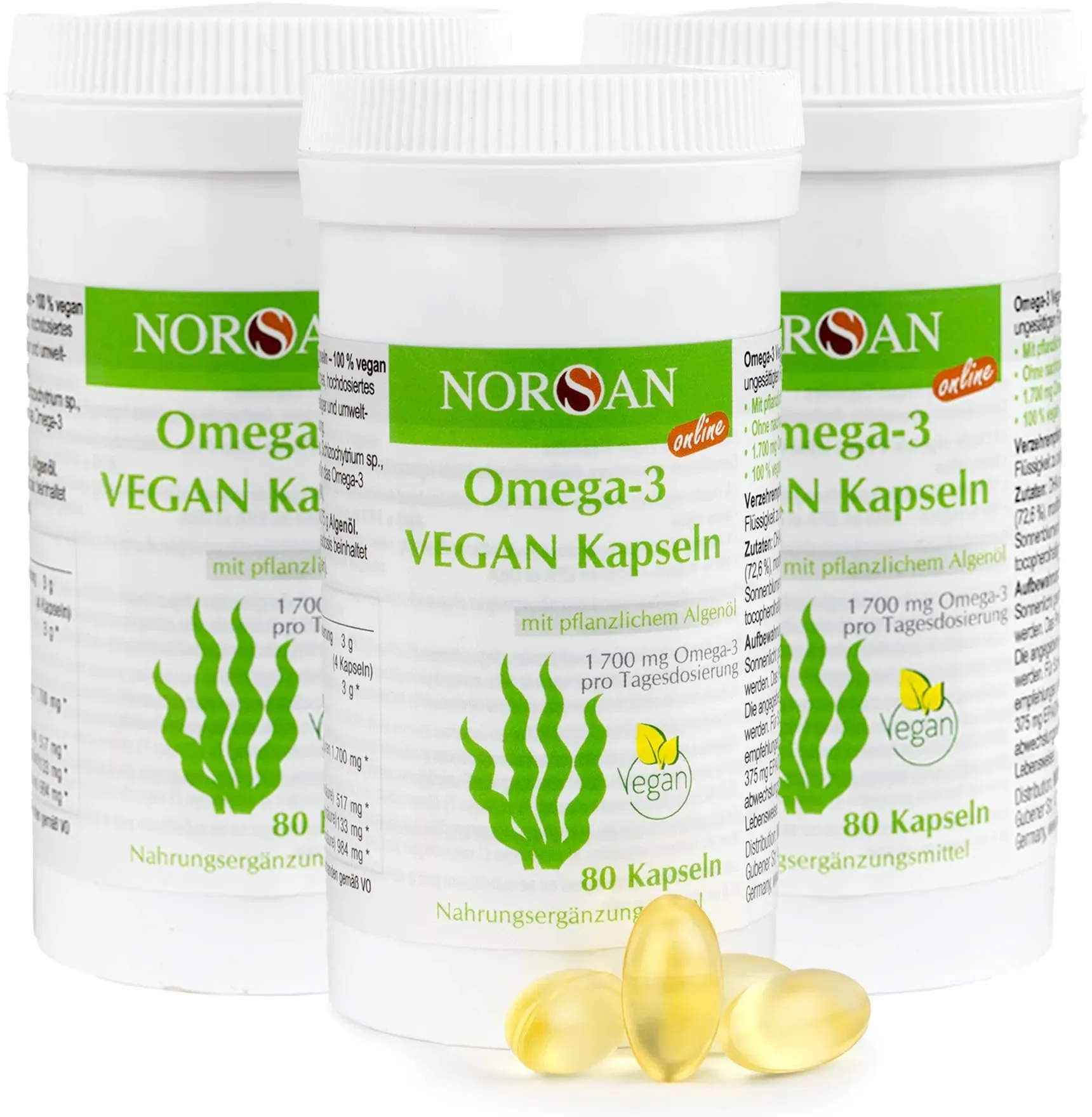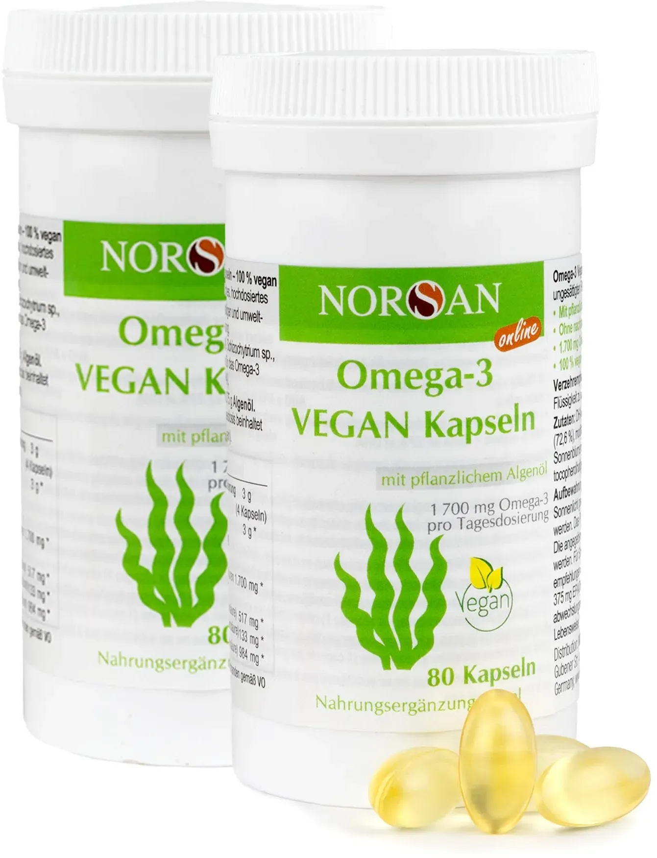 0.19 / 1 ct - Kategorie: Nahrungsergänzungsmittel - NORSAN - GTIN:7071963000058 - PZN:13512730 - 13512730: NORSAN GmbH - NORSAN Omega-3 Kapseln 120 St - 23,20 Euro bei Apotheker.com - gefunden von billiger.de Eine gute Option für Veganer, die eine einzelne Packung hochdosierter Algenöl-Kapseln suchen. ![]() ![]() NORSAN Premium Omega 3 Vegan Kapseln 80 Stück - 1.700mg Omega 3 pro Tagesdosis - vegane Algenöl Kapseln mit hohem EPA- & DHA-Anteil - Algenöl aus nachhaltigem Anbau