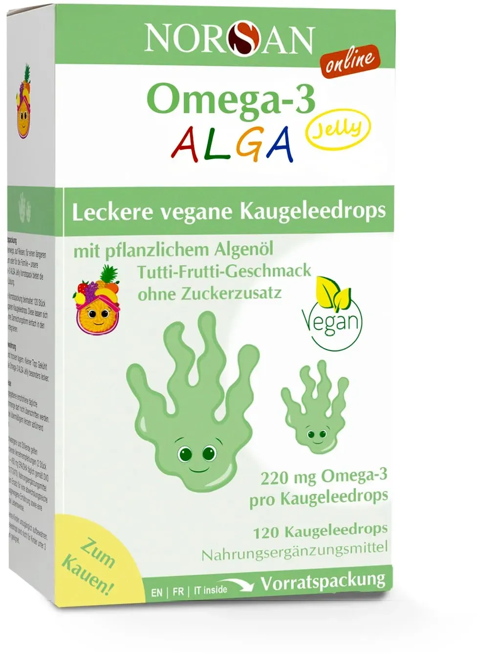 Verfügbarkeit: Auf Lager - Kategorie: Nahrungsergänzungsmittel - NORSAN - GTIN:4260698151330 - ï¸ KINDERLEICHT EINZUNEHMENDES OMEGA 3 AUS ALGEN - NORSAN Omega-3 ALGA Jelly, hergestellt aus pflanzlichem Algenöl, bieten hochdosierte Omega-3-Fettsäuren mit einer ausgewogenen Mischung von DHA & EPA. ï¸ NORSAN OMEGA-3 ALGA JELLY Unsere leckeren Omega 3 Gummies mit natürlichem Tutti-Frutti-Geschmack sind frei zuckerfrei & eignen sich perfekt als gesunder, kinderfreundlicher Snack. ï¸ FüR DIE GESUNDE ENTWICKLUNG DEINES KINDES - Gemäß EFSA haben DHA & EPA (aus Algenöl) nachweislich positive Gesundheitseffekte auf die Herzgesundheit, Sehkraft & die kognitive Entwicklung von Kindern. ï¸ UMWELTFREUNDLICH UND NACHHALTIG - Unsere Omega-3 ALGA Jelly werden aus pflanzlichem Algenöl gewonnen, was die Meeresbewohner schützt und die überfischung reduziert. ï¸ 220 MG mg OMEGA-3 JELLY Die NORSAN Omega-3 ALGA Jelly enthalten 220 mg Omega-3 pro Kaugeleedrops. Die empfohlene Tagesdosis richtet sich nach dem Gewicht, beispielsweise 4 Drops entsprechen insgesamt 880 mg Omega-3. - 56,95 Euro bei Amazon Marketplace Health & Personal Care - gefunden von billiger.de Dieses 3er-Pack der Kapseln ist eine hervorragende Option für eine langfristige und preisgünstige Versorgung mit Norsan Omega-3 Vegan. ![]() ![]() Norsan Omega-3 Vegan Algenöl Kapseln x3 3x80 St