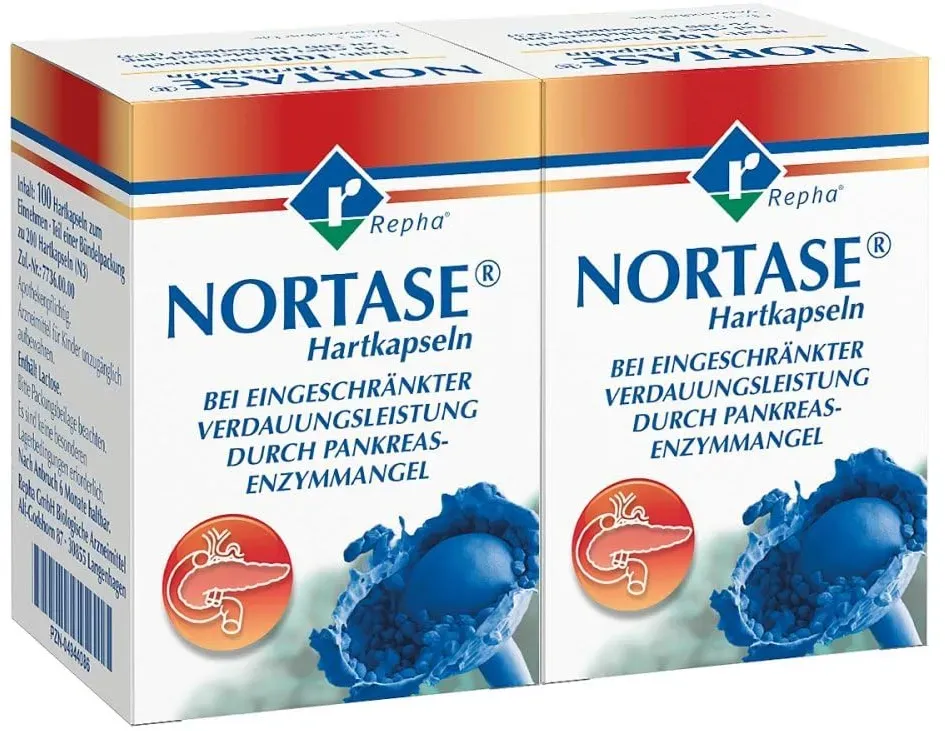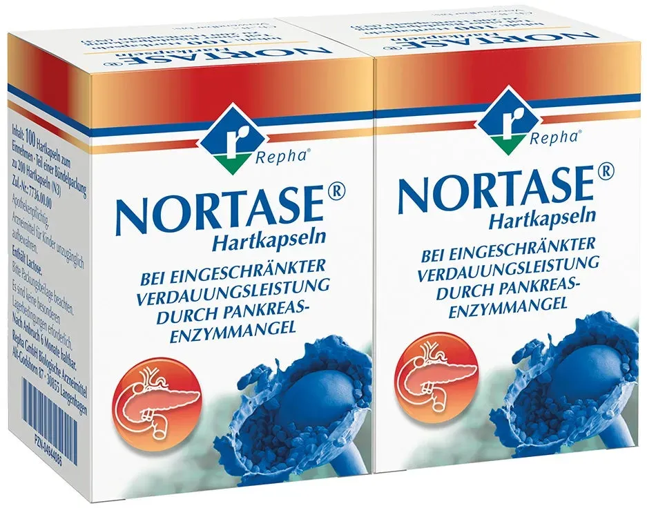 NORTASE - EAN: 4150049440865 - NORTASE - effiziente Verdauungsenzyme bei Bauchspeicheldrüsenschwäche P Das einzige Arzneimittel mit vegetarischen Rizoenzymen bei Bauchspeicheldrüsenschwäche (exokrine Pankreasinsuffizienz) P Effektive Reduktion der Beschwerden, auch bei... - bei shop-apotheke.com - aus Yadore Produktdaten ![]() ![]() Repha Nortase 200 ST