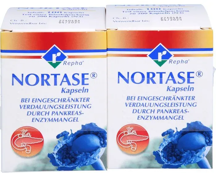 Nortase 200 META PreisvergleichMit dem Meta-Preisvergleich suchen Sie gleichzeitig bei den großen Preisvergleich Portalen!Jetzt live Suche nach nortase 200 starten! Nortase 200 KaufberatungNortase 200 sind Kapseln mit vegetarischen Verdauungsenzymen, die bei Verdauungsschwäche infolge einer gestörten Bauchspeicheldrüsenfunktion (exokrine Pankreasinsuffizienz) eingesetzt werden. Sie enthalten pflanzliche Enzyme wie Rizolipase, Protease und Amylase aus Pilzen (Rhizopus oryzae und Aspergillus oryzae), die helfen, Fette, Eiweiße und Kohlenhydrate zu spalten und so die Verdauung zu unterstützen[1][3][5]. Wichtige Punkte beim Kauf und Gebrauch: