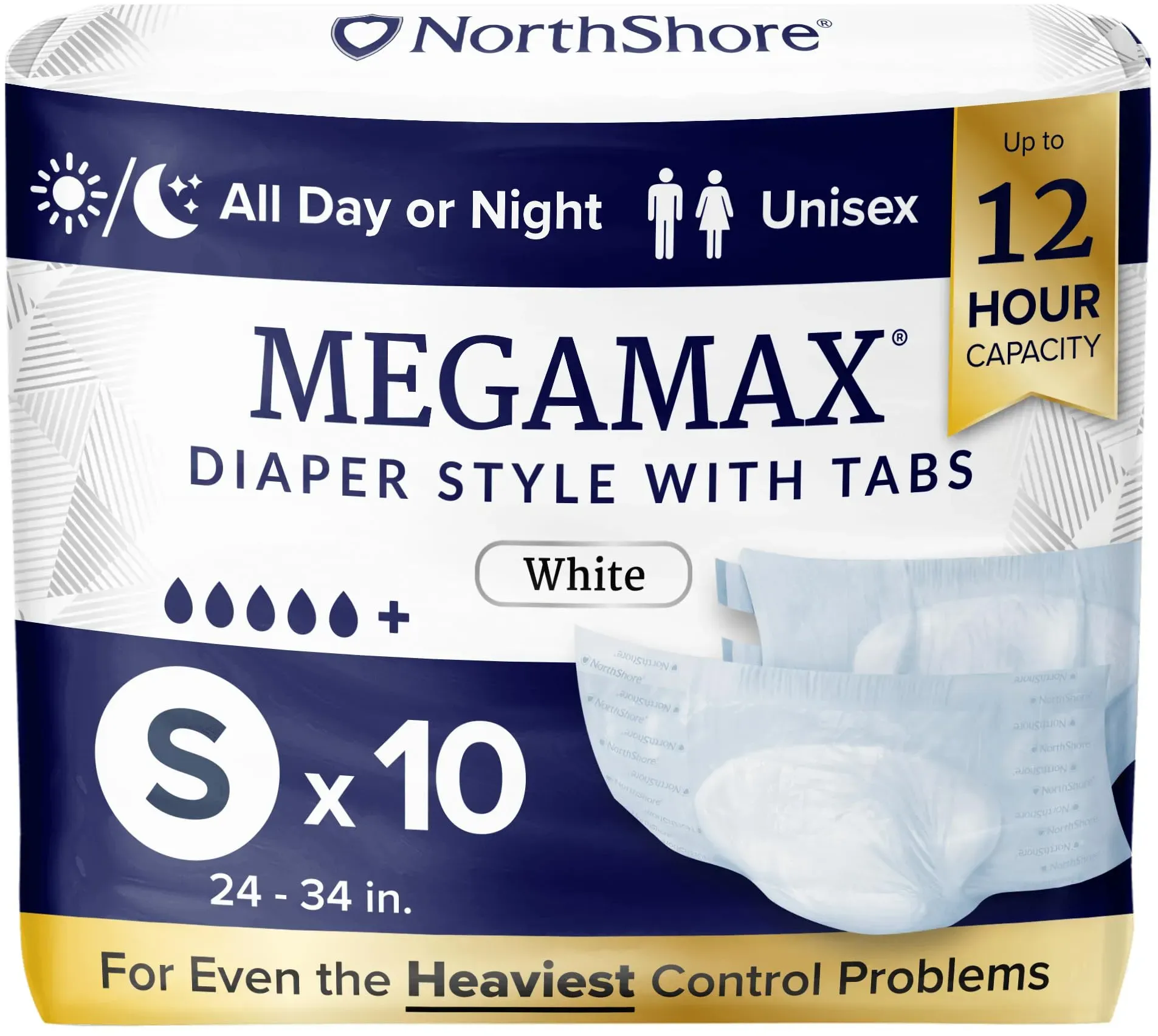 keine Angabe Versand durch AmazonNorthShore MegaMax Inkontinenz-Unterwäsche für Erwachsene, 12-Stunden-Tab-Stil, groß, 10 Stück, weiß, 106,7?137,2 cm, Unisex-Unterwäsche