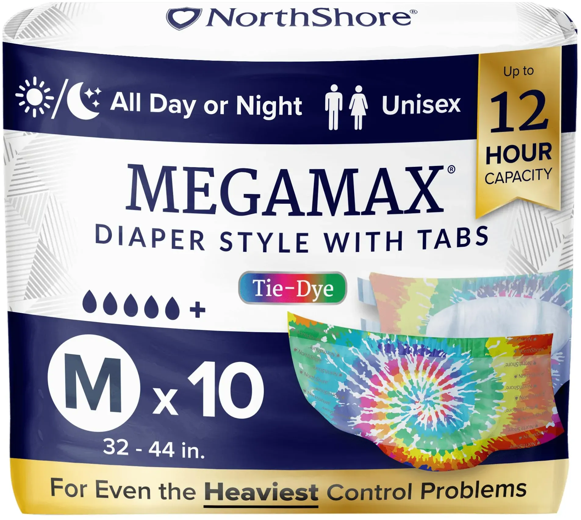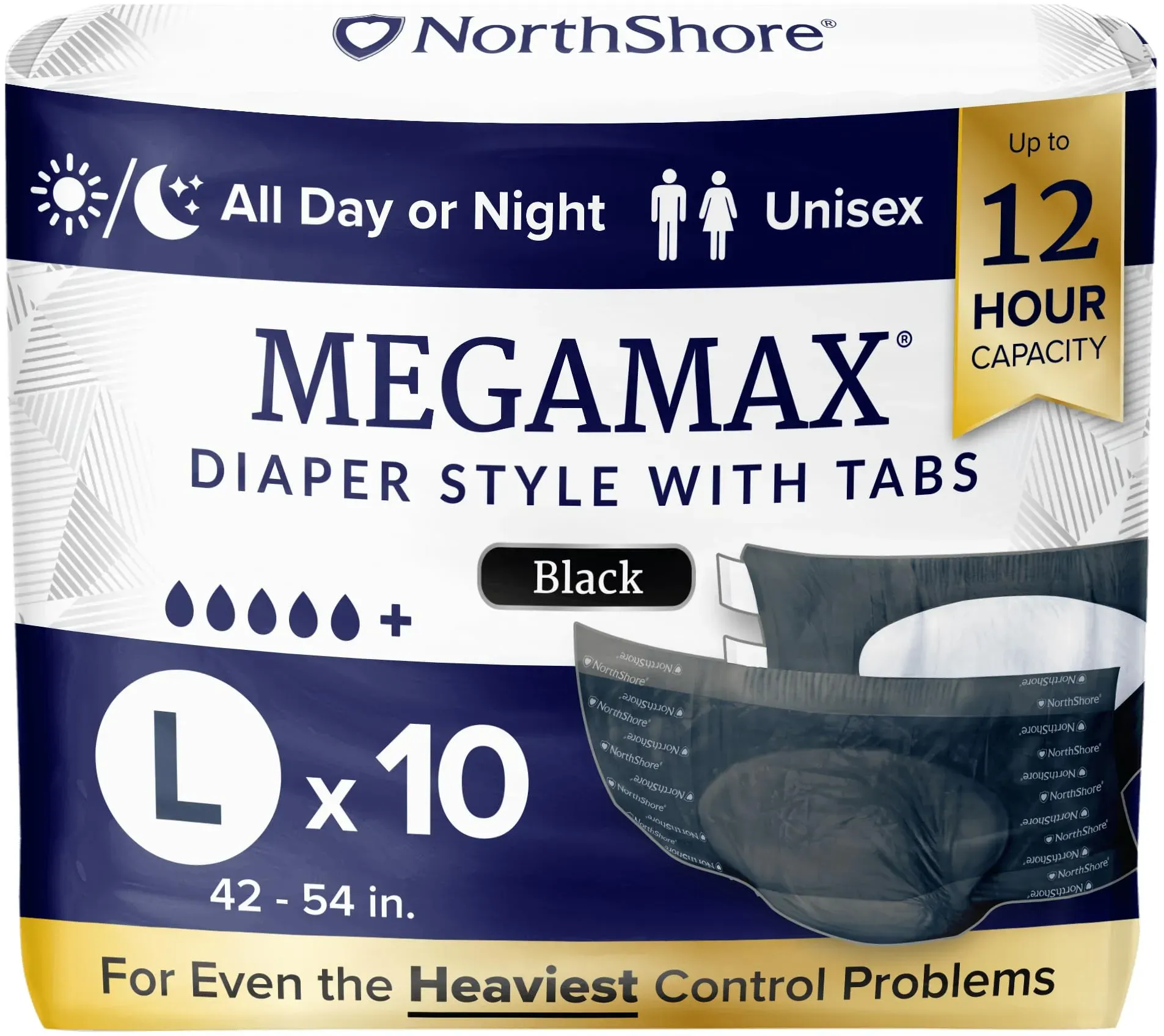 Auf Lager Versand durch AmazonNorthShore MegaMax Inkontinenz-Unterwäsche für Erwachsene, 12-Stunden-Tab-Stil, Größe M, 10 Stück, Schwarz, 81,3?111,8 cm, Unisex