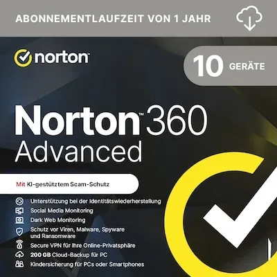 keine Angabe Jetzt als Download verfügbar.Norton 360 Advanced 2025 | 10 Geräte | 1 Jahr | Aktivierungscode per Email