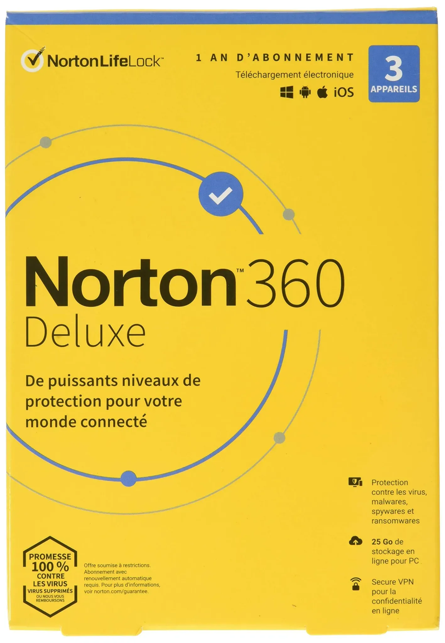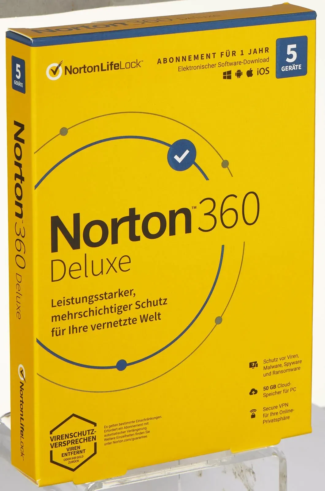 Verfügbarkeit: Auf Lager, sofort versandfertig Lieferzeit 1-2 Werktage - Kategorie: Firewalls & Antiviren - NortonLifeLock - GTIN:5397231003289 - Norton 360 Deluxe Box 5 Geräte Sicherheitssoftware - 35,54 Euro bei Office Partner GmbH - gefunden von billiger.de Dieses Box-Version-Angebot für 3 Geräte und 1 Jahr mit 25 GB Cloud-Speicher zu 38.84 Euro ist für Nutzer geeignet, die eine physische Verpackung bevorzugen. ![]() ![]() Symantec Norton 360 Deluxe Box Version (1 Jahr) 3 Peripheriegeräte, 25 GB Cloudspeicher, Mass Market, Win, Mac, Android, iOS, Französisch
