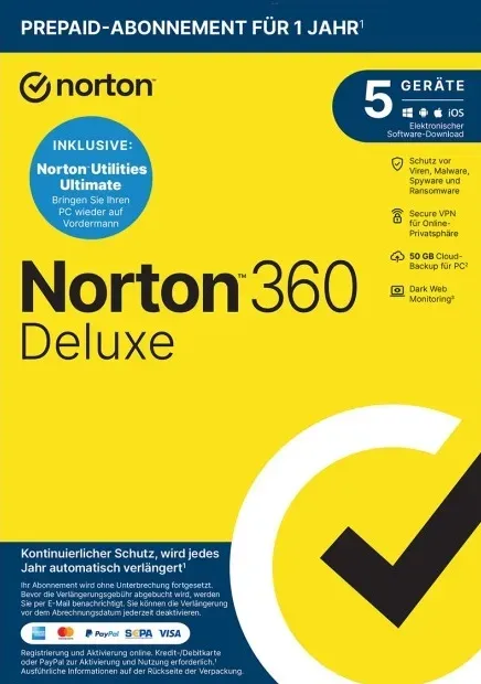 keine Angabe Jetzt als Download verfügbar.Norton 360 Deluxe inkl. Utilities Ultimate 2025 | 5 Geräte | 1 Jahr | Aktivierungscode per Email