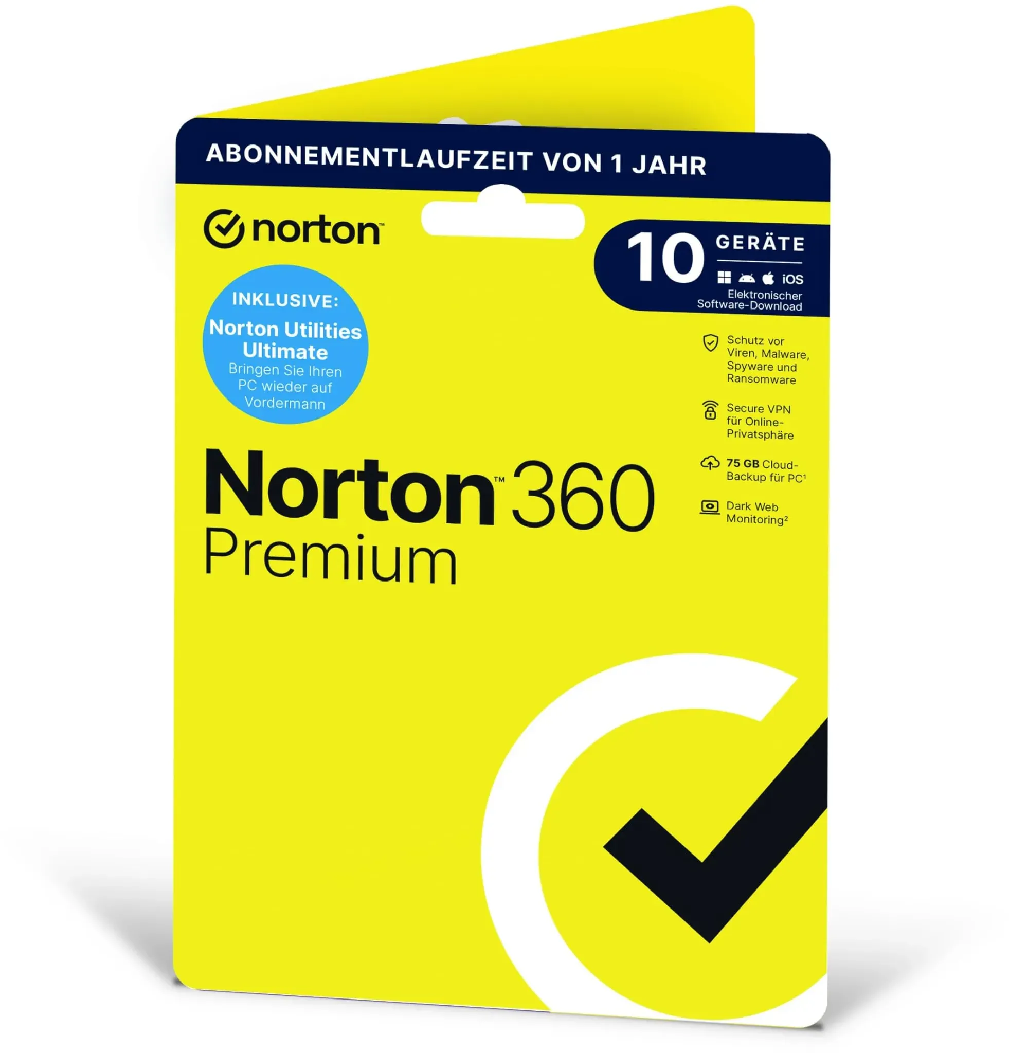 Zustand: Neu - Antivirus & Internet Security - Norton Gen Digital - - EAN: 5397231027933 - Norton 360 Deluxe inklusive Norton Utilities Ultimate, Die Kombination aus vielfältigem Schutz und effizienter Performance-Optimierung lässt keine Wünsche offen Norton 360 Deluxe schützt bis zu 5 PCs, Macs, Android und iOS-Geräte auf mehreren Ebenen Es sichert die Online-Privatsphäre und überwacht das Dark Web Gleichzeitig verbessert Norton Utilities Ultimate Rechenleistung, Arbeitsspeicher und Festplatte von PCs ohne zu stören Das ist maximale Sicherheit und Performance auf einen Schlag - bei Amazon.de Dieses Angebot ist empfehlenswert, da es Norton 360 Premium inklusive Norton Utilities Ultimate für 10 Geräte und 1 Jahr zu einem guten Preis anbietet. ![]() ![]() NortonLifeLock Norton 360 Premium mit Norton Utilities Ultimate 2024 | 10 Geräte | 1 Jahr
